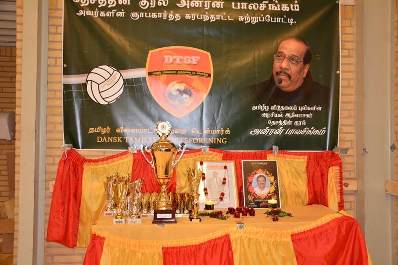 தேசத்தின் குரல் அன்ரன் பாலசிங்கம் அவர்களின் நினைவாக டென்மார்க் தமிழர் விளையாட்டுத்துறையினரால் 5 ஆவது தடவையாக கரப்பந்தாட்டச்சுற்றுப்போட்டி 04.03.17 அன்று கோர்சன்ஸ் நகரில் நடத்தப்பட்டது. நிகழ்வின் முதல் நிகழ்வாக தேசத்தின் குரல்அன்ரன் பாலசிங்கம் அவர்களின் திருவுருவப்படத்திற்கும், மாமனிதர் சாந்தன் அவர்களின் திருவுருவப்படத்திற்கும் ஈகச்சுடர் ஏற்றப்பட்டு , மலர்வணக்கம் செலுத்தப்பட்டு அகவணக்கத்துடன் ஆரம்பமாகியது.