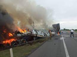 இவ்விபத்தையடுத்து இரு வாகனங்களும் தீப்பற்றிக்கொண்டன, அதையடுத்து இரு வாகனங்களும் தீக்கிரையானதாக அதிகாரிகள் தெரிவித்துள்ளனர்.