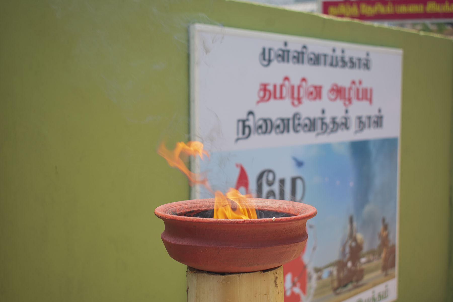 இறுதிப்போரில் புதுமாத்தளனில் தனது கணவரைப் பலி கொடுத்த திருமதி தக்ஸாயினி அருள்நேசயோகநாதன் அஞ்சலி சுடர் ஏற்றி அகவணக்கம் செலுத்தியதைத் தொடந்து முள்ளிவாய்க்கால் கஞ்சி பரிமாறப்பட்டது.