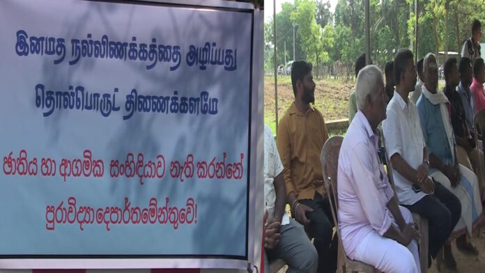 கிளிநொச்சி கரைச்சி பிரதேச செயலக பிரிவில் உள்ள உருத்திரபுரம் உருத்திரபுரீஸ்வரபுரம் ஆலயம் அமைந்துள்ள காணியில், தொல்பொருள் சின்னங்கள் இருப்பதாக, தொல்பொருள் திணைக்களம் தெரிவித்த நிலையில், இன்று, குறித்த நிலப்பரப்பை எல்லைப்படுத்தும் நடவடிக்கை மேற்கொள்ளப்படவுள்ளதாக அறிந்த கிராம மக்கள், அரசியல் கட்சி சார்ந்தவர்கள், கிராம மட்ட அமைப்புகளின் பிரதிநிதிகள் என பலர், தொல்பொருள் திணைக்களம் எல்லைப்படுத்தும் நடவடிக்கைக்கு வரும் போது எதிர்ப்பை வெளியிடுவதற்காக, ஆலய முன்றலில் ஒன்றுகூடியிருந்தனர்.