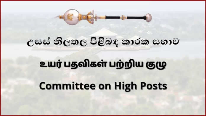 சபாநாயகர் மஹிந்த யாப்பா அபேவர்தன தலைமையில் உயர் பதவிகள் தொடர்பான பாராளுமன்றக் குழு அண்மையில் பாராளுமன்றத்தில் கூடியதுடன், பாராளுமன்ற உறுப்பினர்களான ஜோன் சேனவிரத்ன, தலதா அத்துகோரள, உதய கம்மன்பில, சுதர்ஷனி பெர்னாண்டோபுள்ளே மற்றும் தர்மலிங்கம் சித்தார்த்தன் ஆகியோர் இதில் கலந்துகொண்டனர்.