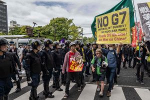 ”அணு ஆயுதப் போர் வேண்டாம்… உக்ரனை விட்டுவிடுங்கள்… சீனா மீது போர் வேண்டாம்” என்பன போன்ற பதாகைகளுடன் அம்மக்கள் எழுப்பும் குரல் ஹிரோஷிமாவில் கேட்டுக் கொண்டிருக்கிறது.