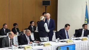 ஜப்பானின் ஹிரோஷிமாவில் நேற்று நடைபெற்ற ஜி-7 மாநாட்டில் இந்திய பிரதமர் நரேந்திர மோடி தென்கொரிய அதிபர் யூன் சுக் இயோல் அருகே அமர்ந்திருந்தார். அப்போது அமெரிக்க அதிபர் ஜோ பைடன் தனது இருக்கையில் இருந்து எழுந்து வந்து பிரதமர் நரேந்திர மோடியை சந்தித்து ஆரத் தழுவி வாழ்த்து கூறினார். இருவரும் சிறிது நேரம் உரையாடினர். இந்த வீடியோ வைரலாக பரவி வரும் நிலையில், அமெரிக்க அதிபர் பைடன் பாரதப் பிரதமர் நரேந்திர மோடியிடம் ஆட்டோகிராப் கேட்டதாக தகவல்கள் வெளியாகியுள்ளன.