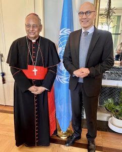 பேராயர் கர்தினால் மல்கம் ரஞ்சித் மற்றும் ஐக்கிய நாடுகள் மனித உரிமைகள் உயர்ஸ்தானிகர் வோல்கர் டேர்க் ஆகியோருக்கு இடையிலான சந்திப்பொன்று திங்கட்கிழமை (22) இடம்பெற்றுள்ளது.
