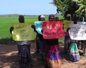 இதேவேளை விவசாயிகளுக்கு நெல்லுக்கான உரிய விலையினை தா, பசளையை மாணியமாக வழங்கு, உரிய பருவத்தில் நீரினை வழங்கு,விவசாயிகளை புறக்கணிக்காதே,விவசாயிகளே நாட்டின் செலாவாணி,போன்ற வாசகங்கள் அடங்கிய சுவரொட்டிகளையும் ஏந்தியவாரு ஆர்ப்பாட்டத்தில் ஈடுப்பட்டுள்ளனர்.