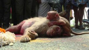 இதைகண்ட அந்த குரங்கின் குட்டி குரங்கு, தாய்குரங்கை எழுப்ப முயற்சித்தது. அது இறந்ததை கண்டு அந்த குட்டி குரங்கு சுற்றி…சுற்றி வந்து பிரிய மனமில்லாமல் தவித்தது.