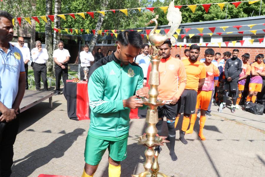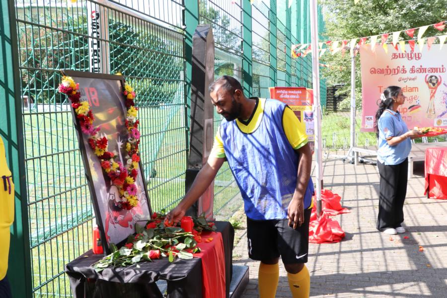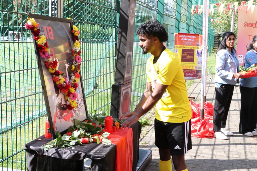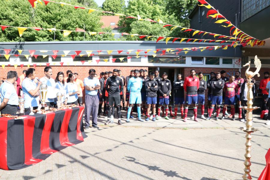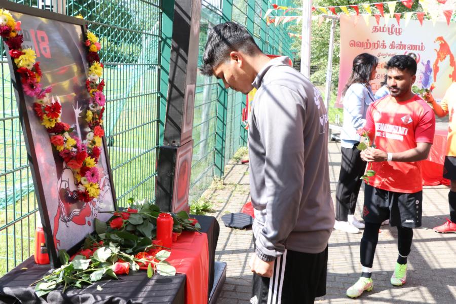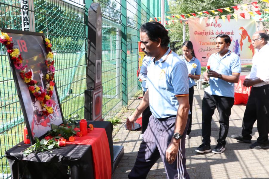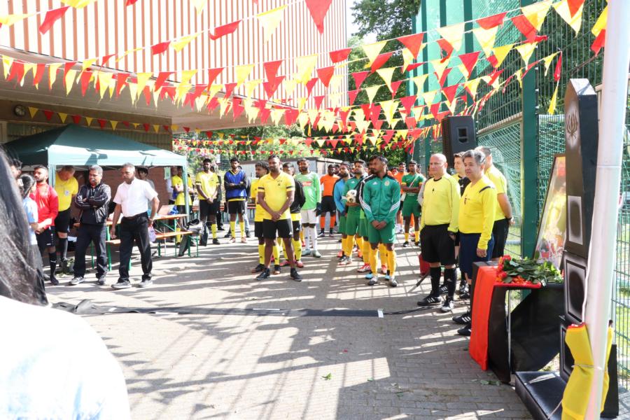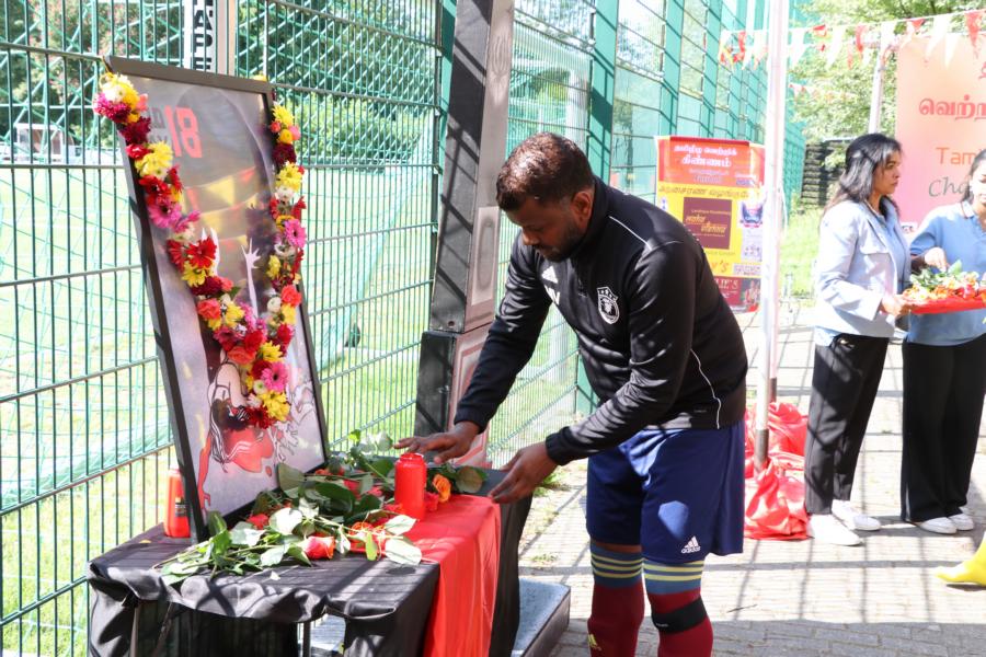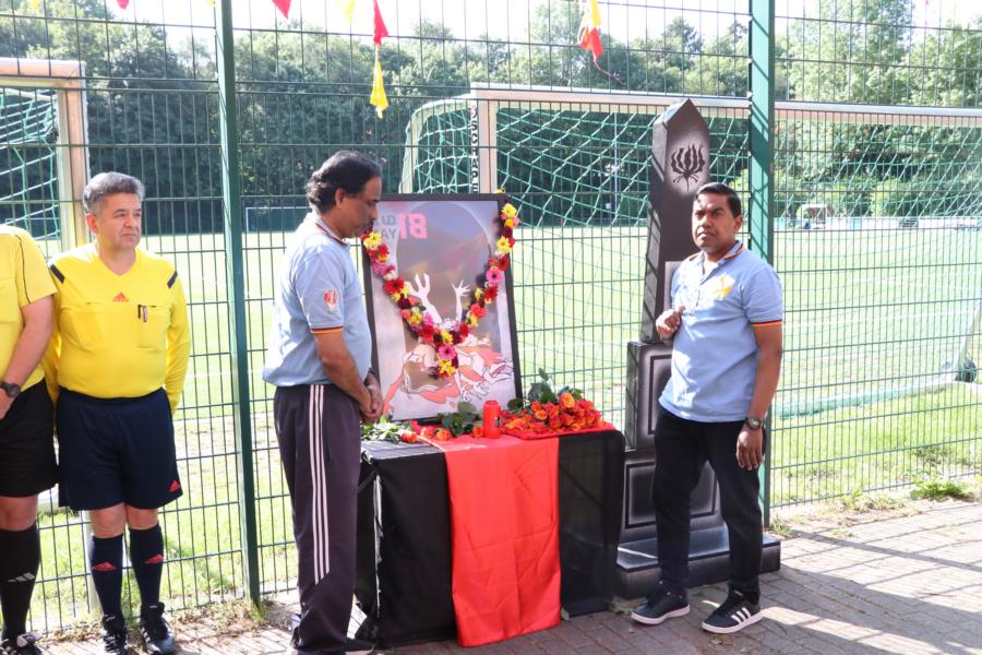 தமிழீழ வெற்றிக் கிண்ணத்திற்கான 11 பேர் கொண்ட உதைபந்தாட்டச் சுற்றுப் போட்டி முதன்முதலாக சோலிங்கன் நகரில் 27.05.2023 இல் வெகுசிறப்பாக நடைபெற்று முடிந்தது.இப் போட்டியின் ஆரம்ப நிகழ்வாக பொதுச்சுடர் ஏற்றிவைக்கப்பட்டு யேர்மனியத் தேசியக் கொடியோடு தமிழீழத் தேசியக் கொடியும் கம்பீரமாக ஏற்றிவைக்கப்பட்டது. தொடர்ந்து ஈகைச்சுடர் ஏற்றிவைக்கப்பட்டு அகவணக்கத்துடன் முள்ளிவாய்க்கால் மண்ணிலே மரணித்த பல்லாயிரம் மக்களையும் மாவீரர்களையும் நினைவுகூர்ந்து அஞ்சலி செலுத்தப்பட்டது. சிறப்பாக அங்கே வைக்கப்பட்ட முள்ளி வாய்க்கால் நினைவுத்தூபிக்கு மலர்மாலை அணிவித்து அஞ்சலி செலுத்தினார். பின் அங்கு வந்திருந்த மக்கள் அனைவரும் தமது அஞ்சலிகளைச் செலுத்தினர்.