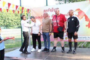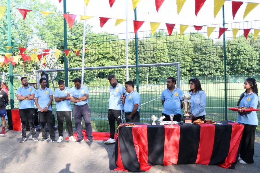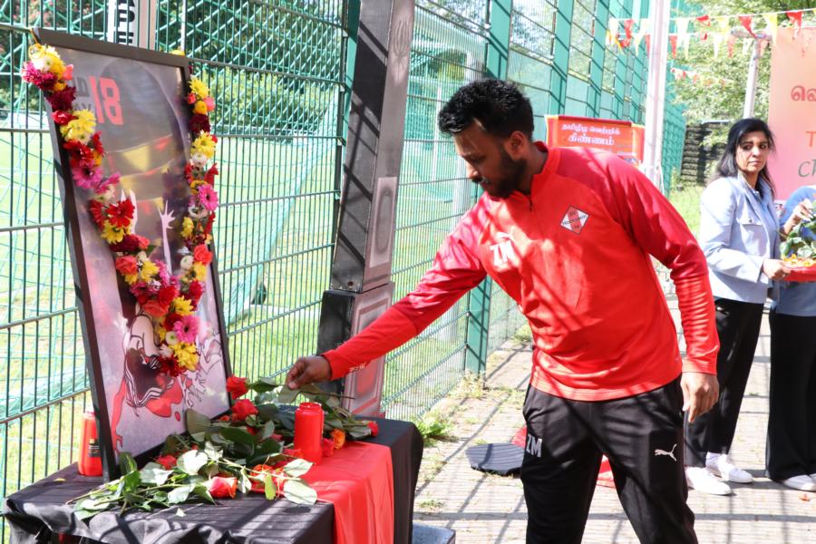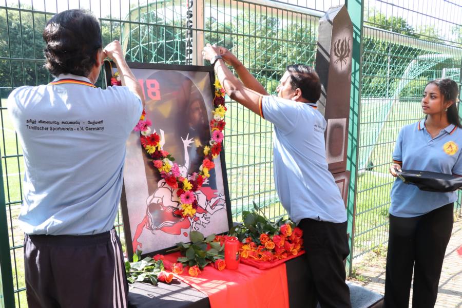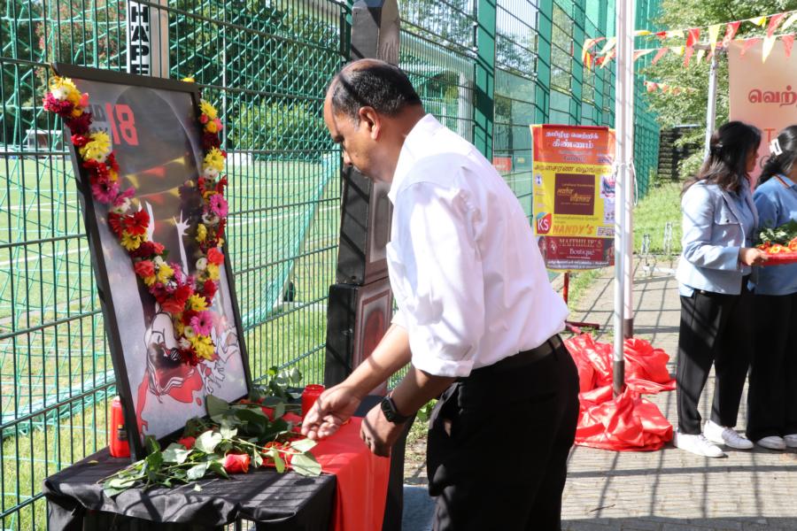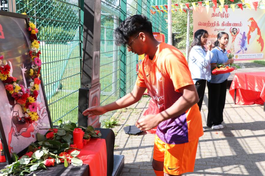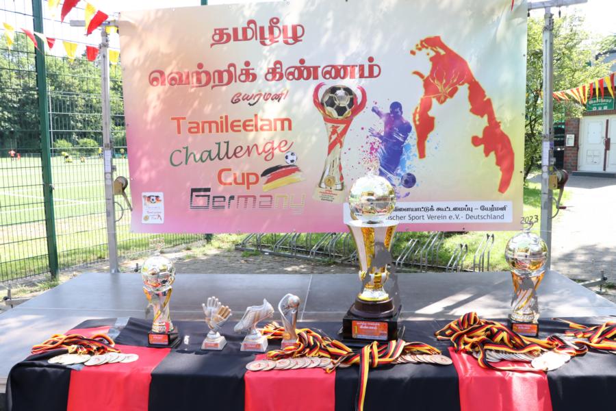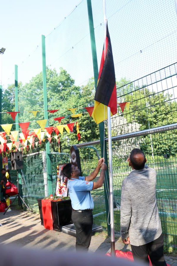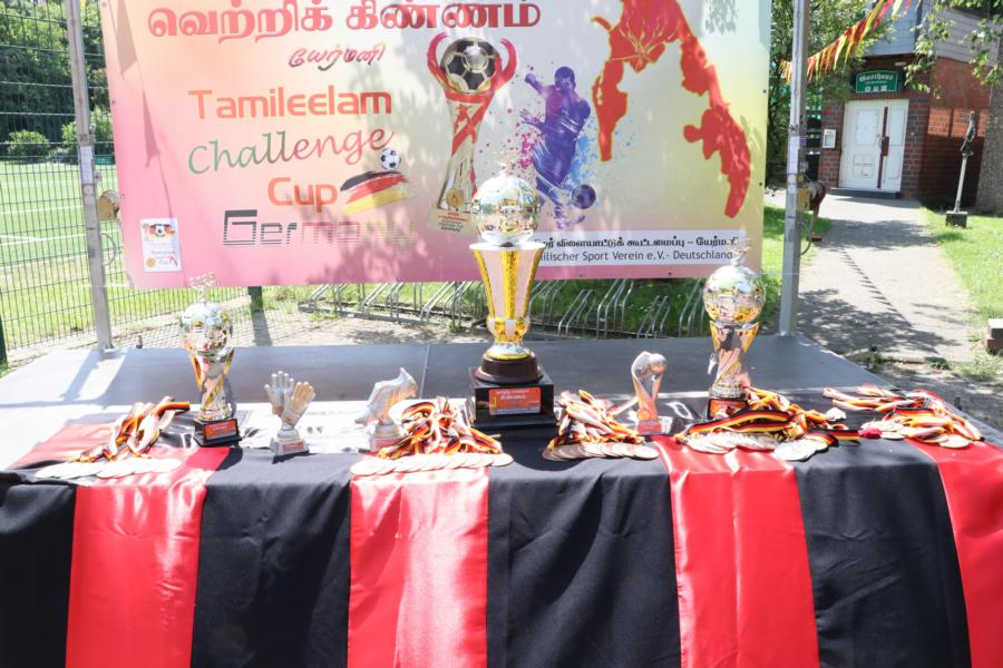 தமிழீழ வெற்றிக் கிண்ணத்திற்கான 11 பேர் கொண்ட உதைபந்தாட்டச் சுற்றுப் போட்டி முதன்முதலாக சோலிங்கன் நகரில் 27.05.2023 இல் வெகுசிறப்பாக நடைபெற்று முடிந்தது.இப் போட்டியின் ஆரம்ப நிகழ்வாக பொதுச்சுடர் ஏற்றிவைக்கப்பட்டு யேர்மனியத் தேசியக் கொடியோடு தமிழீழத் தேசியக் கொடியும் கம்பீரமாக ஏற்றிவைக்கப்பட்டது. தொடர்ந்து ஈகைச்சுடர் ஏற்றிவைக்கப்பட்டு அகவணக்கத்துடன் முள்ளிவாய்க்கால் மண்ணிலே மரணித்த பல்லாயிரம் மக்களையும் மாவீரர்களையும் நினைவுகூர்ந்து அஞ்சலி செலுத்தப்பட்டது. சிறப்பாக அங்கே வைக்கப்பட்ட முள்ளி வாய்க்கால் நினைவுத்தூபிக்கு மலர்மாலை அணிவித்து அஞ்சலி செலுத்தினார். பின் அங்கு வந்திருந்த மக்கள் அனைவரும் தமது அஞ்சலிகளைச் செலுத்தினர்.