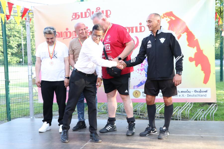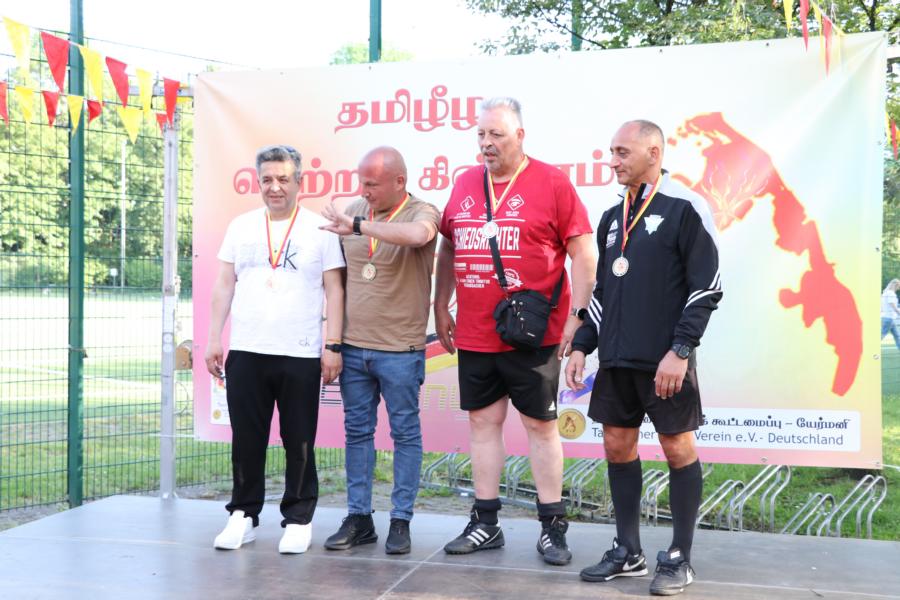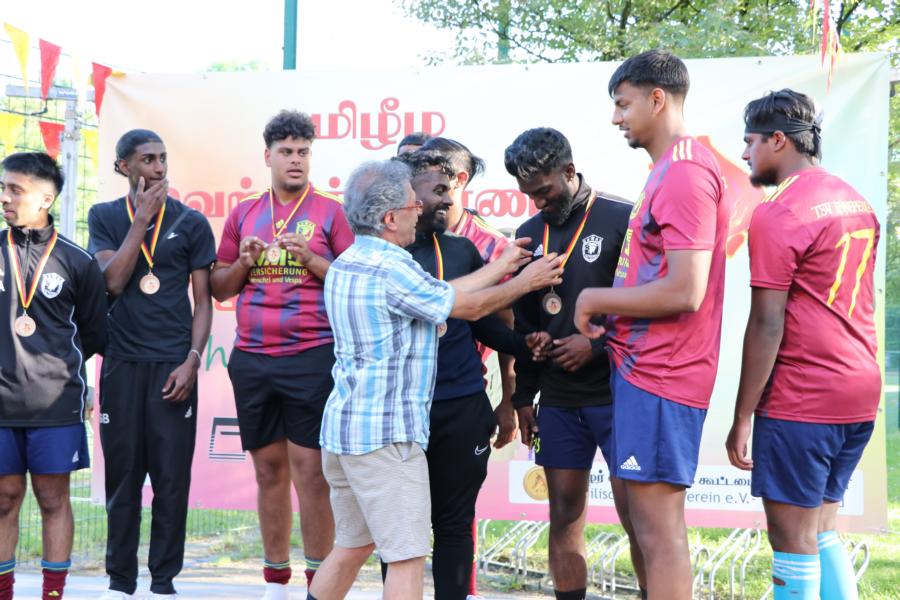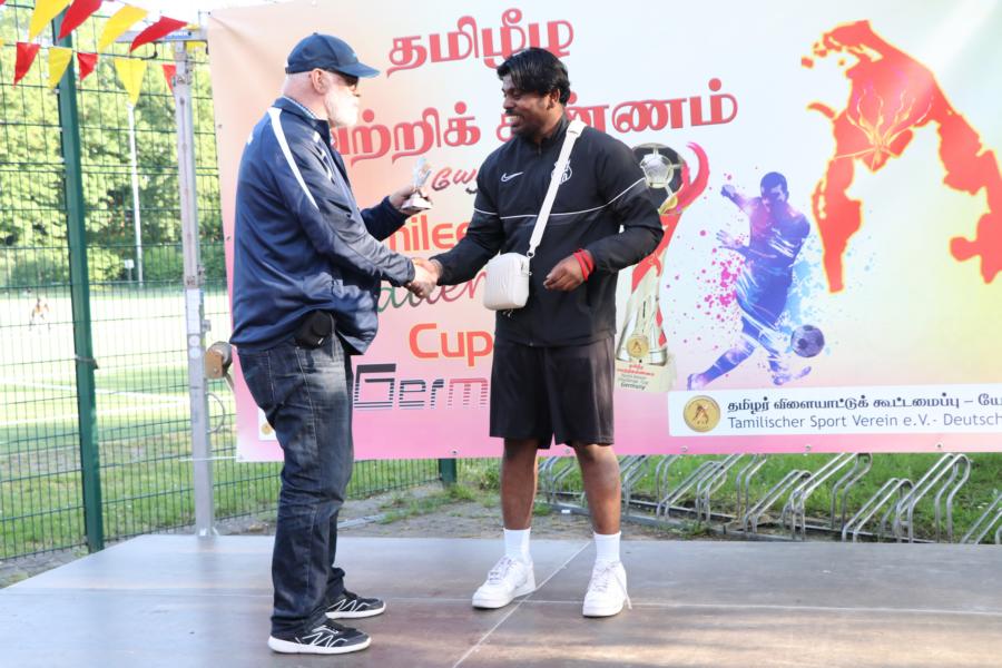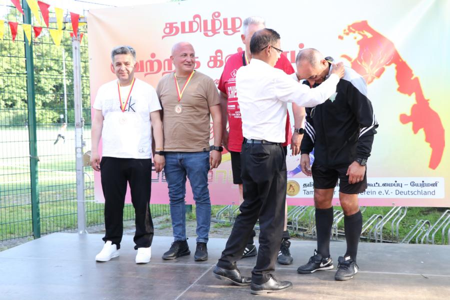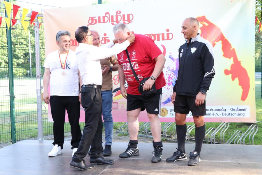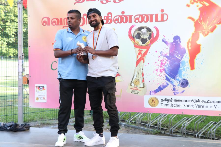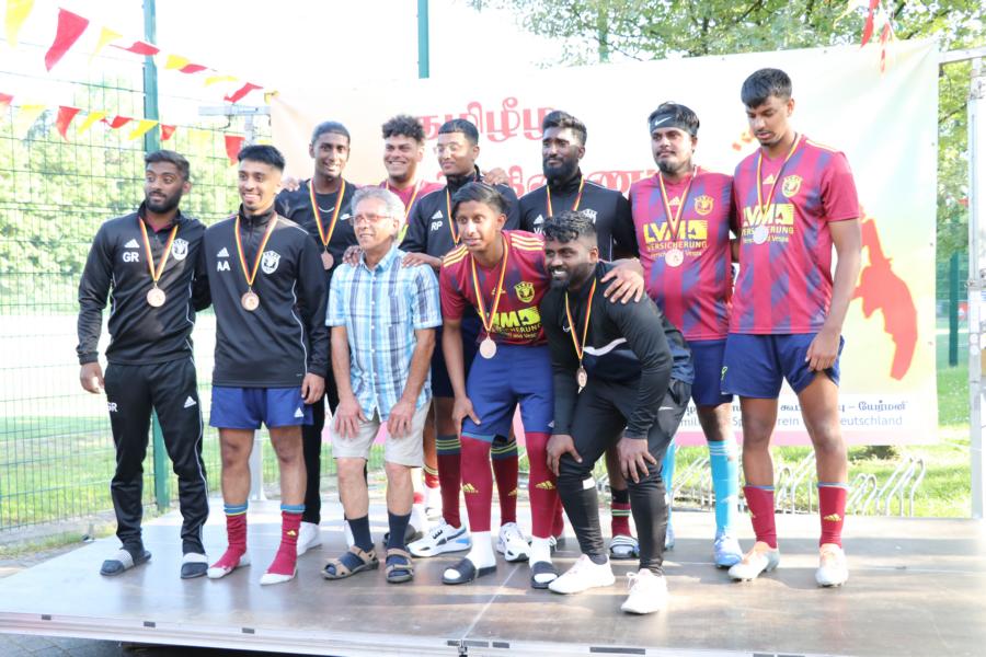 சுற்றுப்போட்டியின் முடிவில் முதலாம், இரண்டாம், மூன்றாம் நிலைகளை முறையே Rot Weiß Hockstein Mönchengladbach , TSC Dortmund, TSV Ennepetal ஆகிய கழகங்கள் பெற்று வெற்றிக்கிண்ணங்களைத் தமதாக்கிக் கொண்டன. இவர்களுக்கான மதிப்பளிப்புகளை யேர்மன் தமிழர் விளையாட்டுக் கூட்டமைப்பின் பொறுப்பாளர் திரு தர்மலிங்கம் இராஜகுமாரன் அவர்களும் சோலிங்கன் தமிழாலய நிர்வாகியும் தமிழர் விளையாட்டுக் கூட்டமைப்பின் செயற்பாட்டாளர் திரு குமாரசாமி நந்தகுமார் அவர்களும் Herrn Hassan Firouzkha அவர்களும் வழங்கிச் சிறப்பித்தனர். சிறந்த விளையாட்டு வீரராக(Man of the Match) சசிகுமார் (Rot Weiß Hockstein Mönchengladbach) அவர்களும் சிறந்த பந்துக் காப்பாளராக (Bester Torwart) ஆருத்ரா (TSC Dortmund) அவர்களும் அதிகூடிய இலக்கை அடைந்தவராக (Bester Torschütze) கெவின் (TSC Dortmund) அவர்களும் தெரிவு செய்யப்பட்டனர். இவர்களுக்கான வெற்றிக் கிண்ணங்களை உதைபந்தாட்டப் பொறுப்பாளர் திரு கார்த்திகேசு ஜெயகரன் அவர்களும் ; Herrn Georg Schubert அவர்களும் திரு கந்தையா நீதிராசா அவர்களும் வழங்கி மதிப்பளித்தனர்.