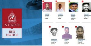 இன்டர்போல் எனப்படும் சர்வதேச காவல்துறையினரால் சிவப்பு பட்டியலிடப்பட்டுள்ள நபர்களின் வரிசையில் 7 இலங்கையர்களின் பெயரும் உள்ளடக்கப்பட்டுள்ளதாக தகவல்கள் தெரிவிக்கின்றன.