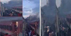 இதனையடுத்து ரெயில் உடனடியாக நிறுத்தப்பட்டது. என்ஜின் பகுதியில் இருந்து நெருப்புடன் கரும்புகை எழுந்ததால் பயணிகள் அனைவரும் அவசரம் அவசரமாக வெளியேறினர். விபத்து பற்றி தீயணைப்பு துறைக்கு தகவல் தெரிவிக்கப்பட்டது.
