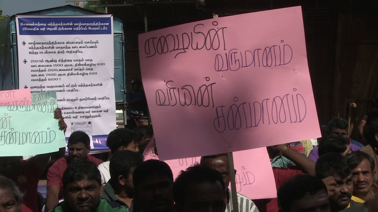 மே மாதம் தொடக்கம் தங்களிடம் அதிகரித்த வரி அறவீடு மேற்கொள்வதற்கு எதிராக இவ் எதிர்ப்பு போராட்டம் மேற்கொள்ளப்பட்டுள்ளது.