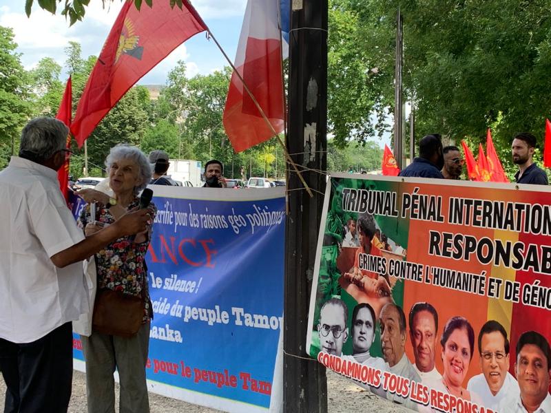 பிரான்சு தமிழர் ஒருங்கிணைப்புக் குழு, தமிழ்ச் சங்கங்களின் கூட்டமைப்பு மற்றும் தமிழீழ மக்கள் பேரவை ஆகியவற்றின் ஏற்பாட்டில் இடம்பெற்ற இந்தப் போராட்டத்தில் பதாதைகளை ஏந்தியவாறும் தமிழீழத் தேசியக் கொடிகளை ஏந்தியவாறும் இளையோர்கள் பலரும் முன்னின்று குரல் எழுப்பினர்.