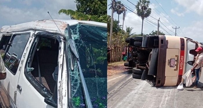 விபத்தில் சிக்கி காயமடைந்த பலர் சாவகச்சேரி ஆதார வைத்தியசாலையில் அனுமதிக்கப்பட்டு சிகிச்சை பெற்றுவருவதாக பொலிஸார் தெரிவித்துள்ளனர்.