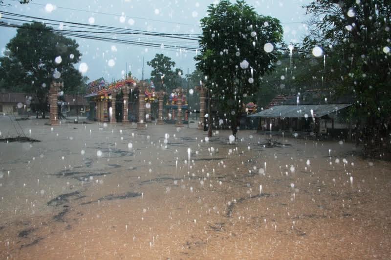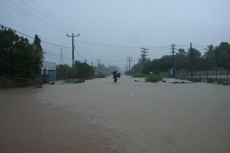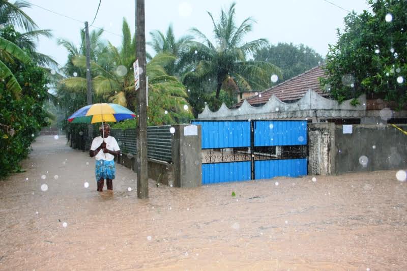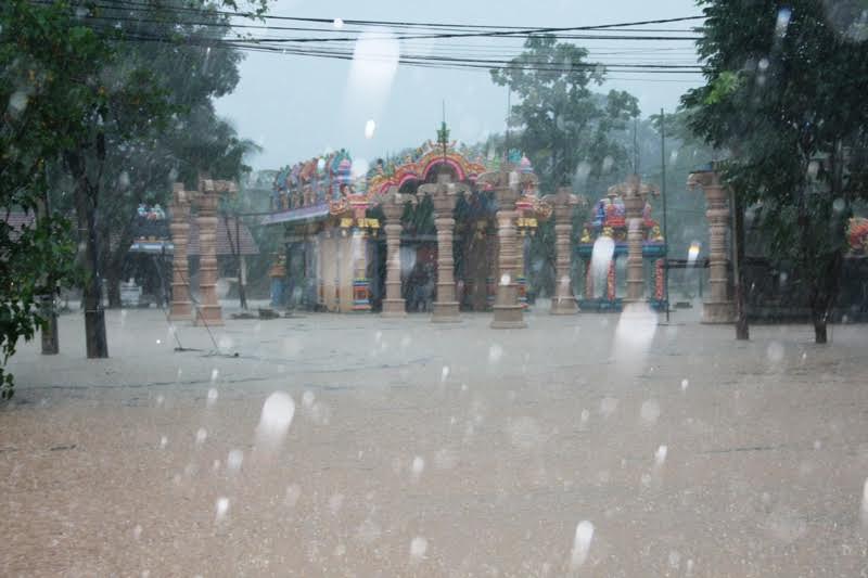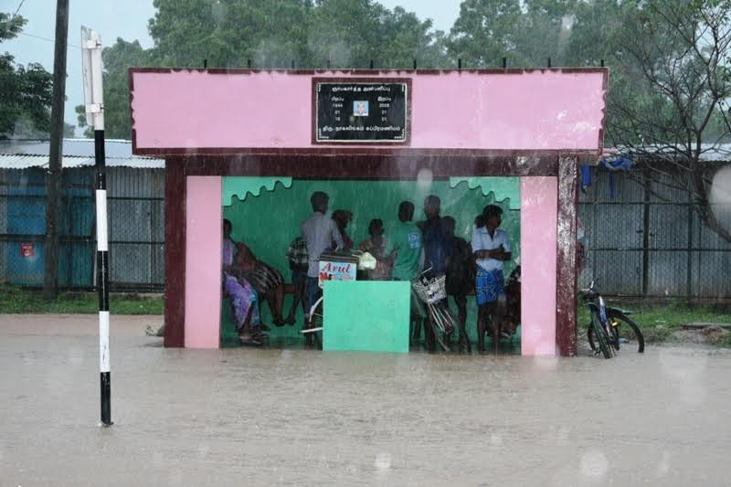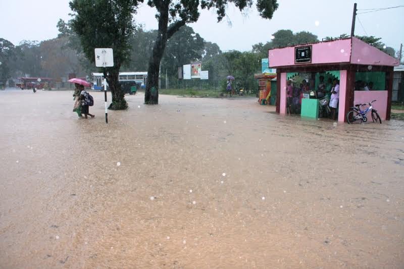 கிளிநொச்சியில் நேற்று பிற்பகல் இரண்டு மணி முதல் நான்கு முப்பது மணி வரை தொடர்ச்சியாக கடும் மழை பெய்தது.வீதிகளில் வெள்ளம் நிரப்பி வழிந்ததோடு, பல கிராமங்களில் பல பகுதிகள் வெள்ளத்திலும் மூழ்கின.