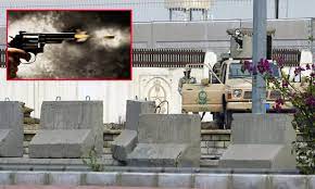 பதிலுக்கு பாதுகாப்பு போலீசாரும் சுடத் தொடங்கினர். இந்தச் சண்டையில் போலீஸ்காரர் ஒருவர் பரிதாபமாக உயிரிழந்தார். தாக்குதலுக்கான நோக்கம் உடனடியாகத் தெரியவில்லை என அதிகாரிகள் தெரிவித்துள்ளனர்.