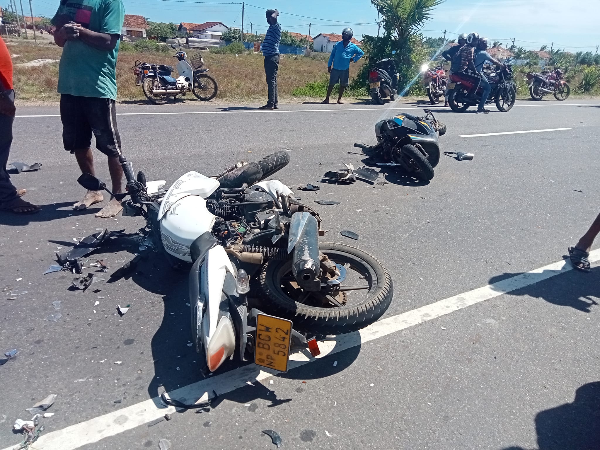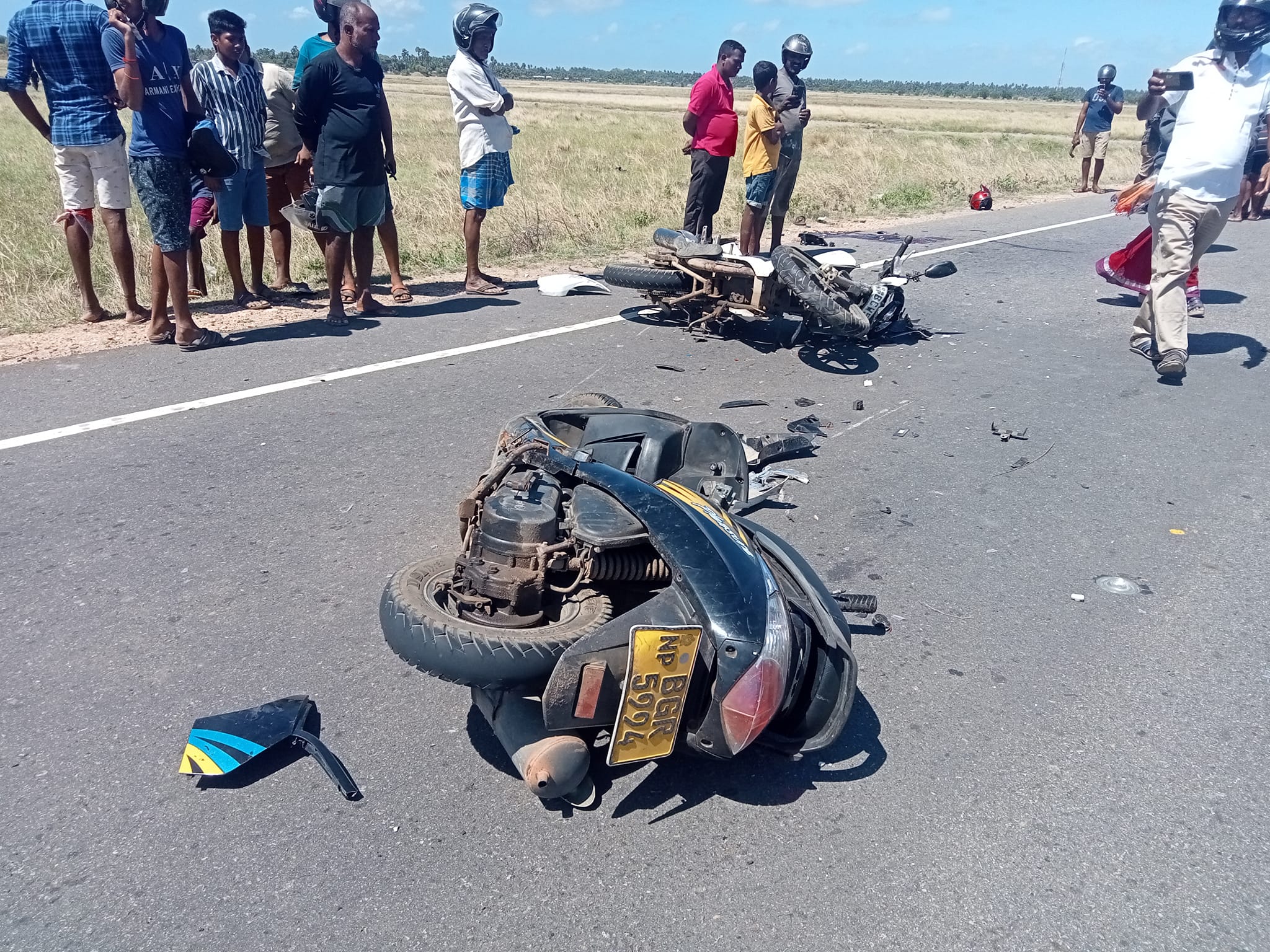 யாழ்ப்பாணம் – அராலி , வட்டுக்கோட்டை வீதியில் கல்லுண்டாய் வெளி பகுதியில் இன்றைய தினம் வியாழக்கிழமை மதியம் இரண்டு மோட்டார் சைக்கிள்கள் ஒன்றுடன் ஒன்று மோதி மோதி விபத்துக்கு உள்ளாகியுள்ளன.