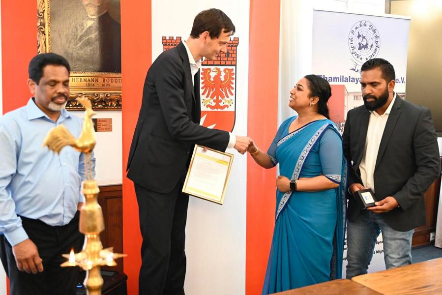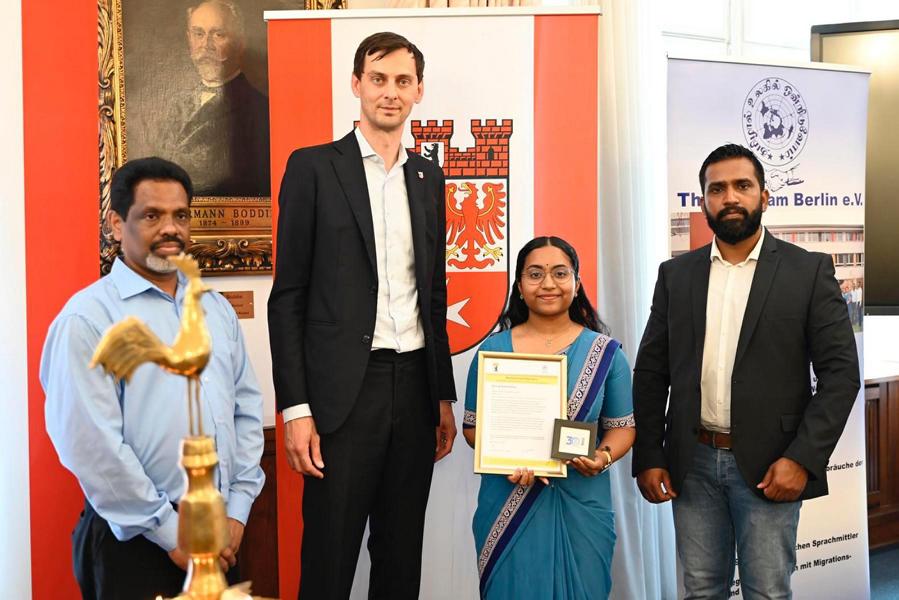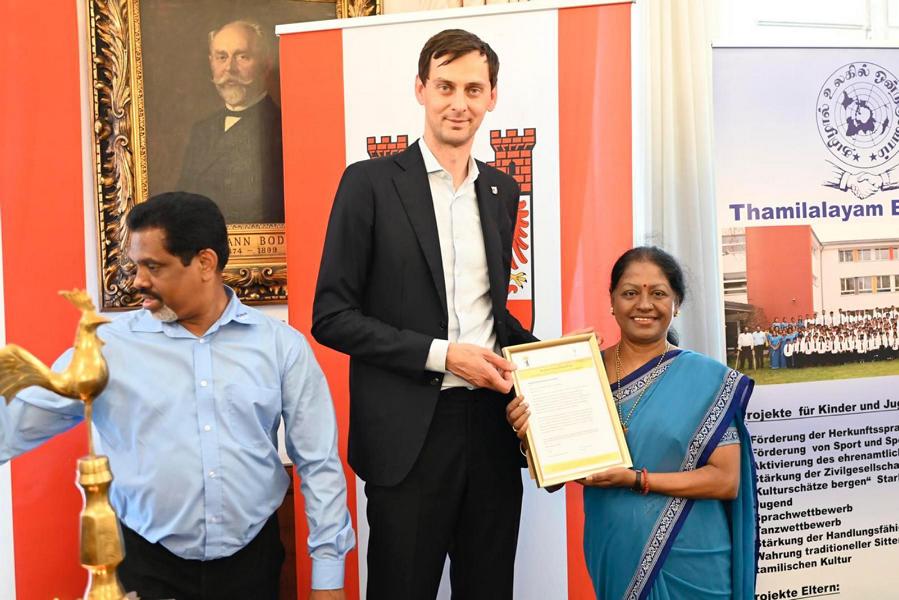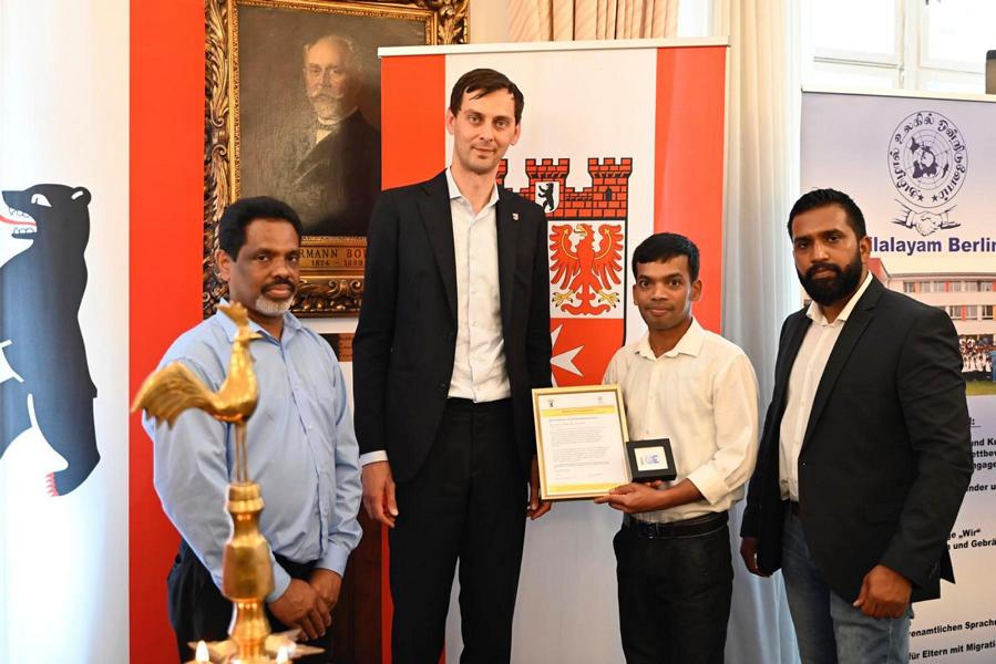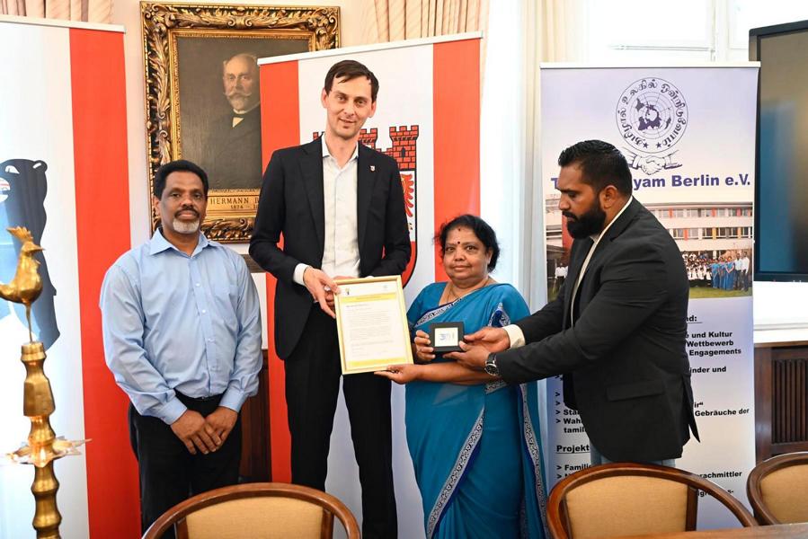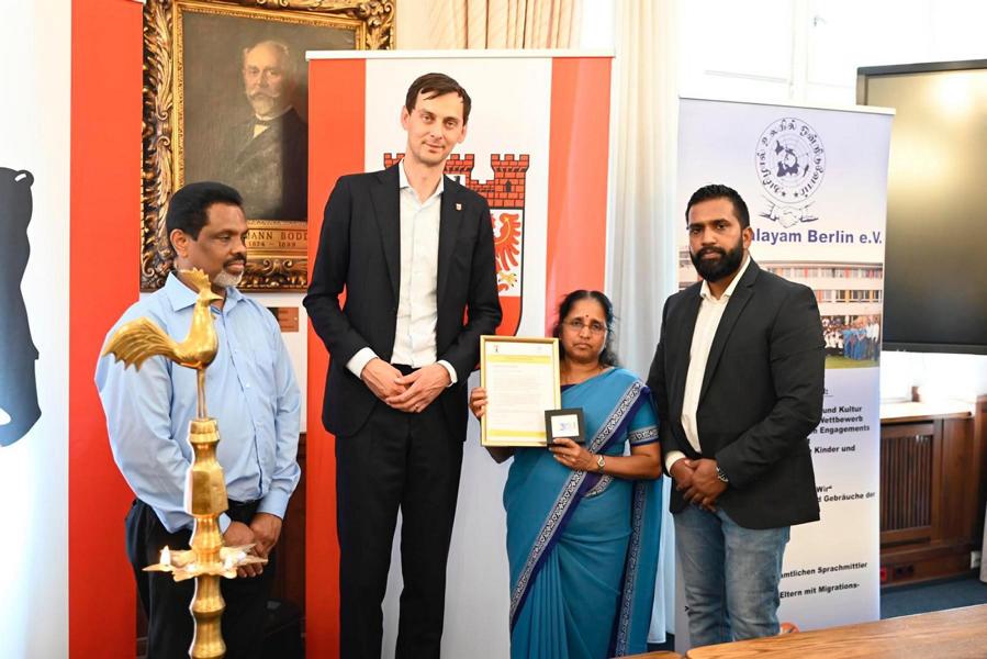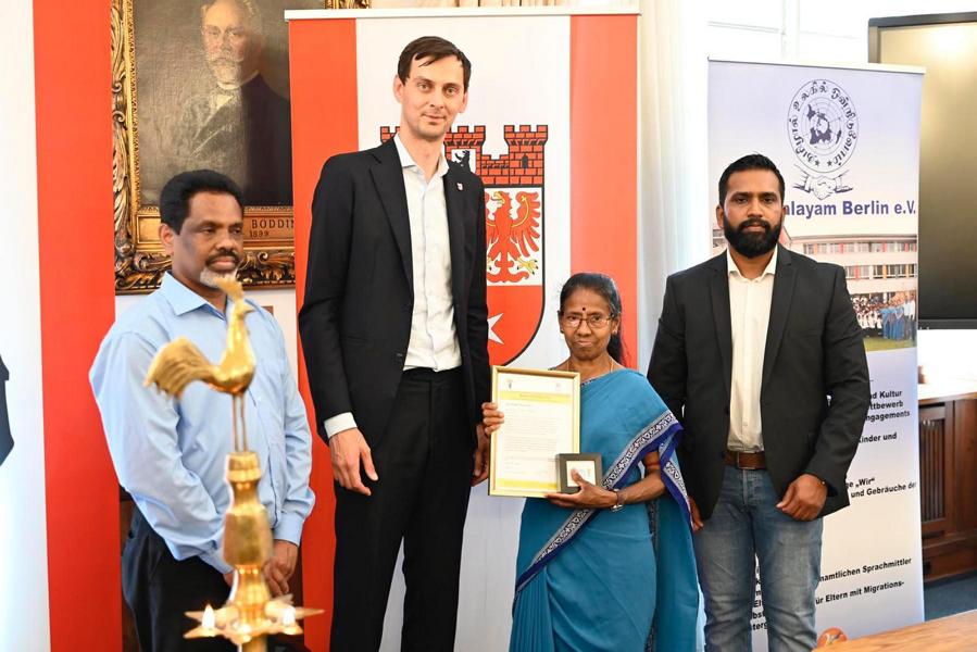 புலம்பெயர் மண்ணில் பிறந்து வளரும் தமிழ்ச் சிறார்களுக்கு தாய்மொழியை பல்லாண்டு காலமாக ஊட்டி வளர்த்து வரும் யேர்மன் கல்விக் கழகத்தின் பேர்லின் தமிழாலய ஆசிரியத்தெய்வங்களுக்கு பேர்லின் மாநகர பிதா சார்பாக பொதுச்சேவை மதிப்பளிப்பு வழங்கப்பட்டது.