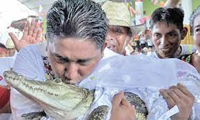 இந்நிலையில் மேயர் ஹியூகோ சாசா முதலை ஒன்றை திருமணம் செய்து கொண்டது போல காட்சிகள் இணையத்தில் வைரலாகி வருகிறது. இந்த திருமணத்தில் முதலைக்கு மணப்பெண் அலங்காரம் செய்யப்பட்டிருந்தது.