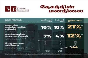 வெரிடே ரிசர்ச்சின் கேலப் பாணியிலான (Gallup style) சமீபத்திய ஆய்வு சுற்றின் ‘தேசத்தின் மனநிலை’ கருத்துக்கணிப்பின்படி, 2023 பெப்ரவரி மற்றும் 2022ஆக்டோபர் ஆகிய இரண்டு மாதங்களினதும் 10% ஆக இருந்த அரசாங்கம் மீதான மக்கள் அங்கீகாரத்தின் மதிப்பீடு, 2023 ஜூன் இல் 21% ஆக இரட்டிப்பாகியுள்ளது.