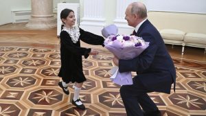 அச்சிறுமியை நேரில் சந்தித்து ரஷ்ய அதிபர் புதின் ஆச்சரியத்தை அளித்திருக்கிறார். அச்சிறுமியை அதிபர் மாளிகைக்கு அழைத்து புதின் நாற்காலியில் அமர வைத்தும் உரையாடி இருக்கிறார். இது தொடர்பான வீடியோவை ரஷ்ய அரசு வெளியிட்டுள்ளது.