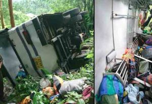 பூண்டுலோயா வேவஹேன பிரதேசத்தில் இருந்து வட்டகொட தோட்டத்திற்கு பணிபுரிய சென்றவர்களே இவ்வாறு பணியை முடித்துக்கொண்டு மீண்டும் பஸ்ஸில் வீடு திரும்பிய போதே குறித்த விபத்து இடம்பெற்றுள்ளது.
