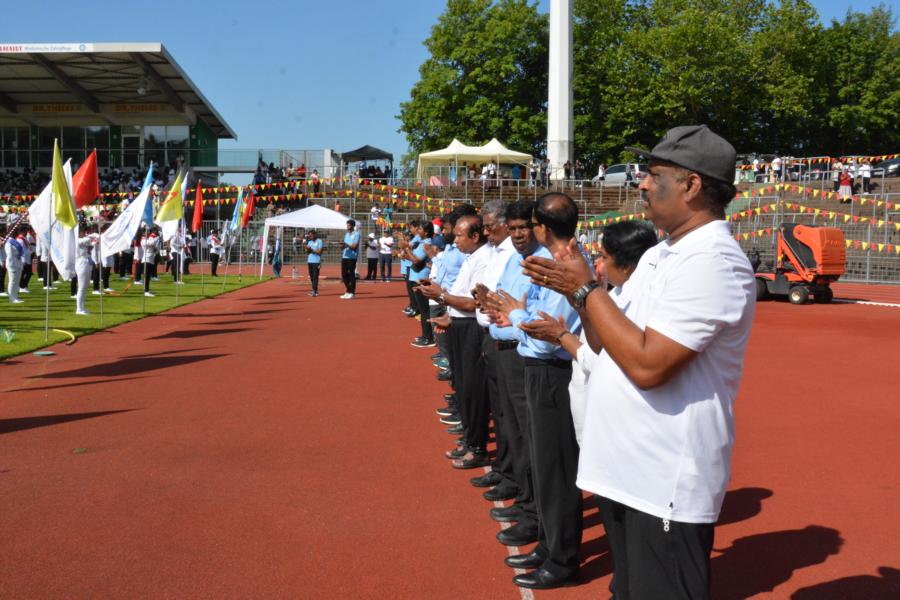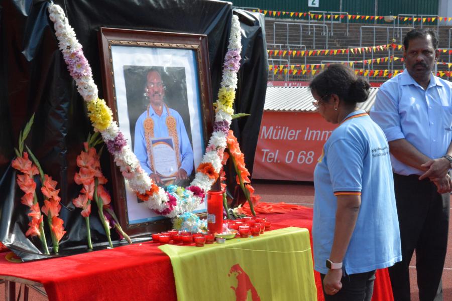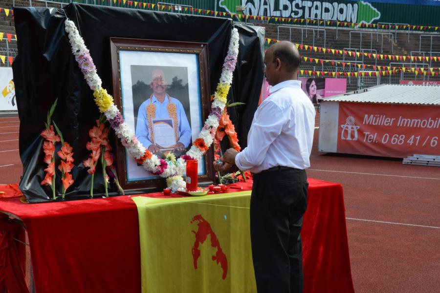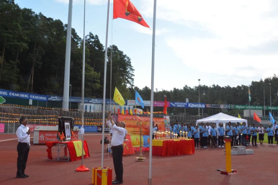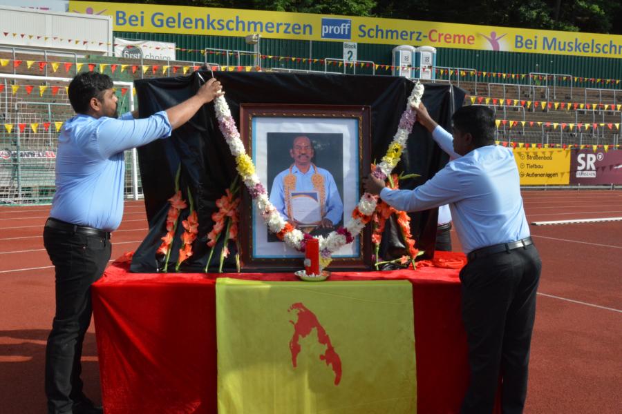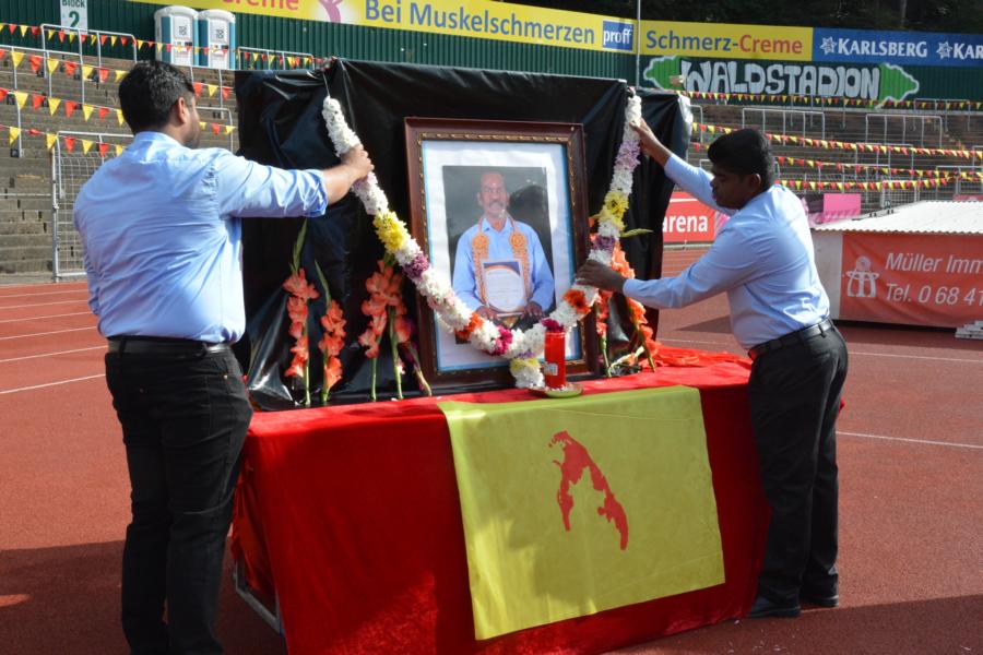 அவரின் பெயர் சூட்டப்பட்ட மைதானத்தில் ஆரம்ப நிகழ்வாக பொதுச்சுடரினை கொம்பூர்க் நகரக் கோட்டப் பொறுப்பாளர் திரு பசுபதிப்பிள்ளை உதயமூர்த்தி அவர்கள் ஏற்றிவைத்தார். தொடர்ந்து யேர்மன் தேசியக் கொடியைத் தமிழர் விளையாட்டுக் கூட்டமைப்பின் பொறுப்பாளர் திரு தர்மலிங்கம் இராஜகுமாரன் அவர்களும் தமிழீழத் தேசியக்கொடியைத் தமிழர் ஒருங்கிணைப்புக் குழுவின் சார்லான்ட் மாநிலப் பொறுப்பாளர் திரு பரணிரூபசிங்கம் அவர்களும் தமிழ்க் கல்விக்கழகத்தின் கொடியைத் தமிழ்க் கல்விக்கழகத்தின் கலைப்பிரிவுத் துணைப்பொறுப்பாளர் முனைவர் விபிலன் சிவநேசன் அவர்களும் ஏற்றி வைத்தனர்.