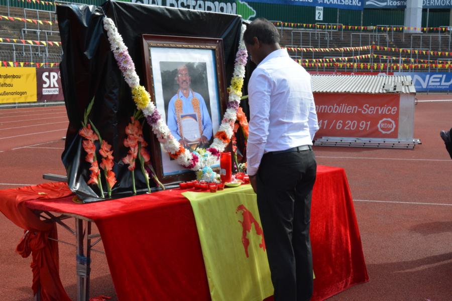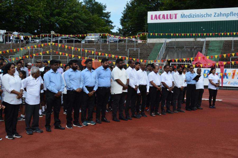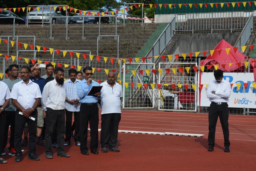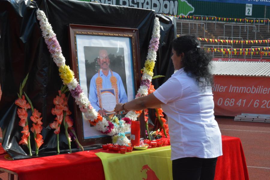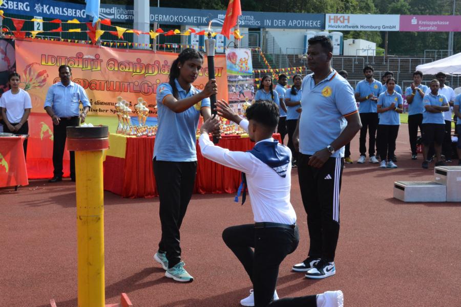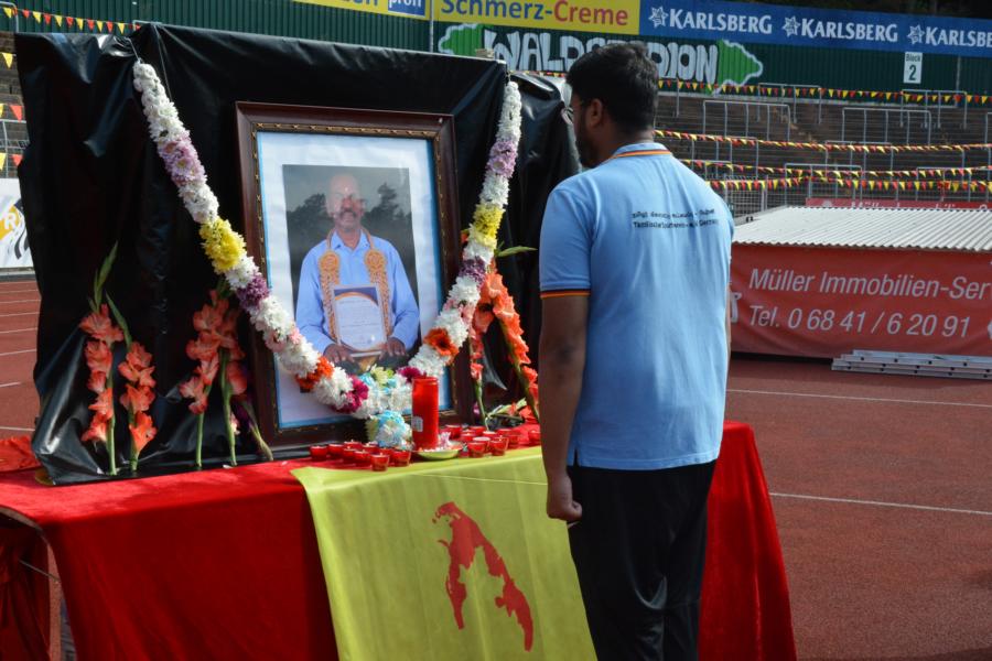 அவரின் பெயர் சூட்டப்பட்ட மைதானத்தில் ஆரம்ப நிகழ்வாக பொதுச்சுடரினை கொம்பூர்க் நகரக் கோட்டப் பொறுப்பாளர் திரு பசுபதிப்பிள்ளை உதயமூர்த்தி அவர்கள் ஏற்றிவைத்தார். தொடர்ந்து யேர்மன் தேசியக் கொடியைத் தமிழர் விளையாட்டுக் கூட்டமைப்பின் பொறுப்பாளர் திரு தர்மலிங்கம் இராஜகுமாரன் அவர்களும் தமிழீழத் தேசியக்கொடியைத் தமிழர் ஒருங்கிணைப்புக் குழுவின் சார்லான்ட் மாநிலப் பொறுப்பாளர் திரு பரணிரூபசிங்கம் அவர்களும் தமிழ்க் கல்விக்கழகத்தின் கொடியைத் தமிழ்க் கல்விக்கழகத்தின் கலைப்பிரிவுத் துணைப்பொறுப்பாளர் முனைவர் விபிலன் சிவநேசன் அவர்களும் ஏற்றி வைத்தனர்.