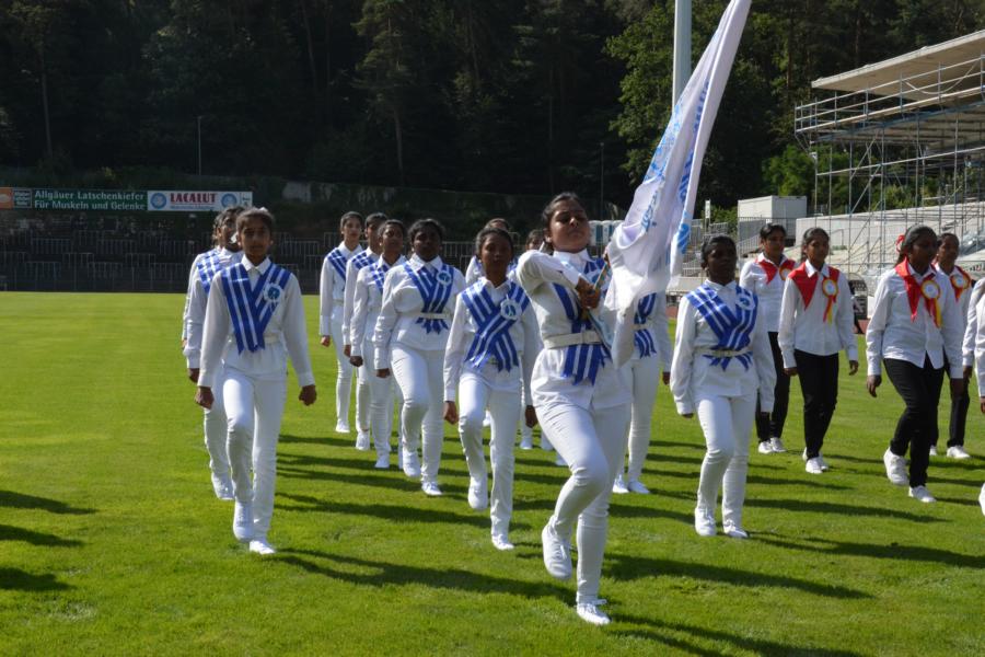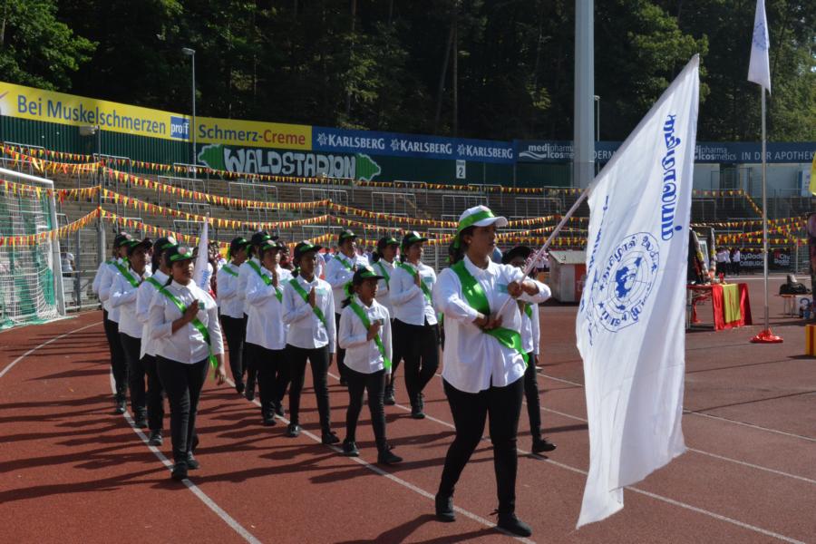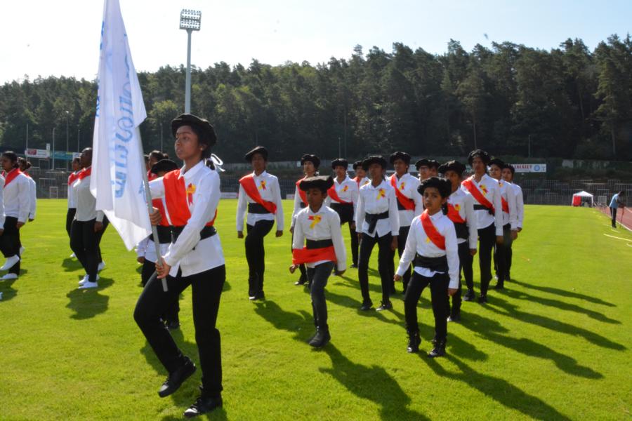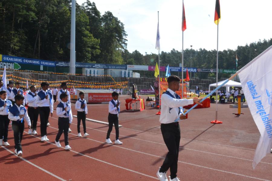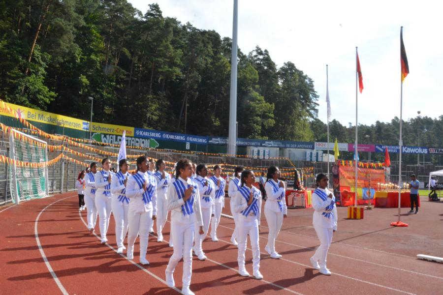முதலாவதாக அணிவகுப்பு இடம்பெற்றது. 11 அணிகள் தங்கள் தமிழாலயக் கொடிகளைத் தாங்கியவாறு நேர்த்தியோடும் கம்பீரத்தோடும் மைதானத்தைச் சுற்றி அணிவகுத்து வந்தது பார்க்கத் தாயக நினைவுகளை மீட்டுவதாக அமைந்தது.