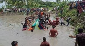 வங்காளதேசத்தில் சுமார் 60 பயணிகளை ஏற்றிக்கொண்டு பாஷர் ஸ்மிருதி பரிபாஹன் என்ற பேருந்து நேற்று காலை 9 மணியளவில் பிரோஜ்பூரின் பண்டாரியாவில் இருந்து புறப்பட்டது. அப்போது 10 மணியளவில் பரிஷால்- குல்னா நெடுஞ்சாலையில் சத்ரகாண்டாவில் உள்ள சாலையோர குளத்தில் கவிழ்ந்து விழுந்து விபத்துக்குள்ளானது. இந்த விபத்தில், மூன்று குழந்தைகள் உள்பட குறைந்தது 17 பேர் உயிரிழந்தனர்.