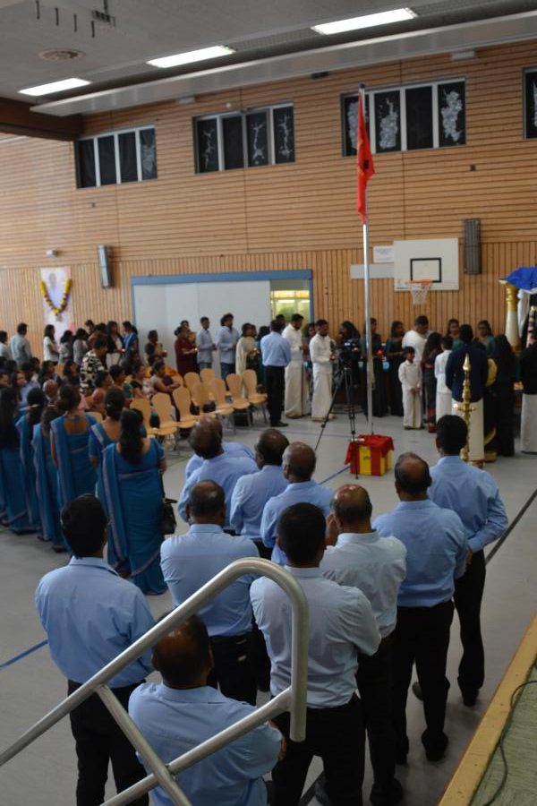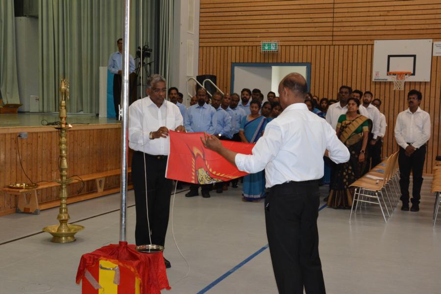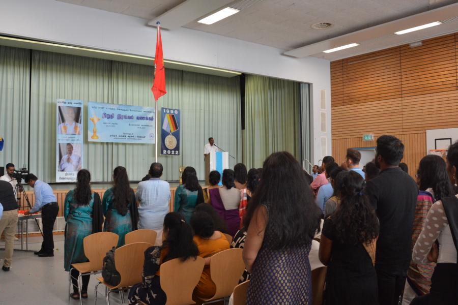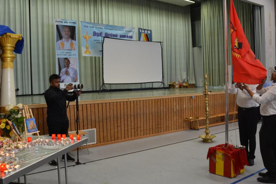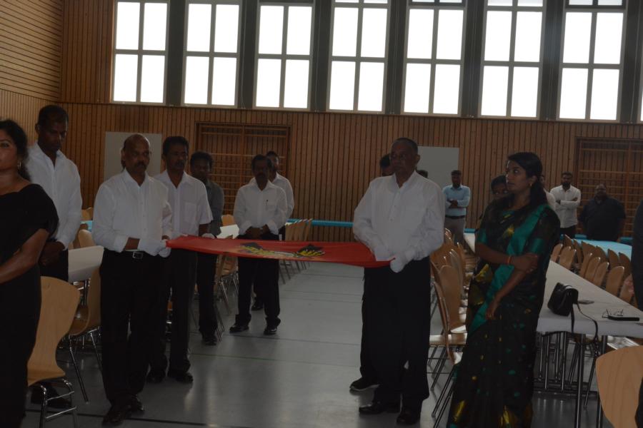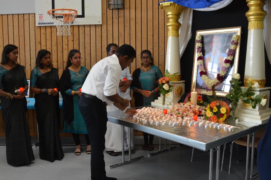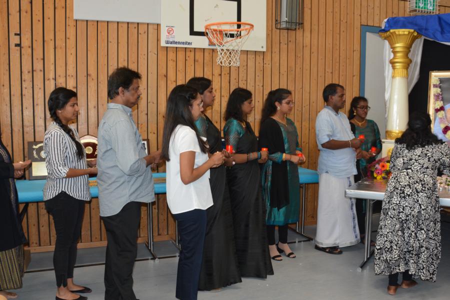 பொதுச்சுடரைக் கொம்பூர்க் நகரப் பிரதிநிதி திரு. பசுபதிப்பிள்ளை உதயமூர்த்தி ஏற்றிவைக்கத் தொடங்கிய நிகழ்விலே தமிழீழ தேசியக்கொடியினைத் தமிழர் ஒருங்கிணைப்புக் குழுவின் யேர்மன் கிளைப்பொறுப்பாளர் திரு யோன்பிள்ளை சிறிரவீந்திரநாதன் அவர்களால் ஏற்றிவைக்கப்பட்டது. ஈகைச்சுடரினை அவரது சகோதரர் திரு சின்னத்துரை புஸ்பலிங்கம் அவர்களால் ஏற்றிவைக்கப்பட, அன்னாரின் திருவுருப்படத்துக்கான மலர்மாலையை அவரது துணைவியாரான திருமதி சிவபாக்கியம் யோகலிங்கம் அவர்களும், அவரது பிள்ளைகளில் ஒருவரான செல்வி துர்க்கா யோகலிங்கம் அவர்களும் இணைந்து அணிந்ததைத் தொடர்ந்து, தமிழாலயங்களின் மாணவர்கள், பெற்றோர்கள், ஆசிரியர்கள், தமிழ்க் கல்விக் கழகத்தினர்,தமிழர் ஒருங்கிணைப்புக்குழுவின் மாநில மற்றும் நகரப் பிரதிநிதிகள், உற்றார், உறவுகள், நண்பர்களென அனைவராலும் சுடரேற்றி, மலர்வணக்கம் செலுத்தப்பட்டது.