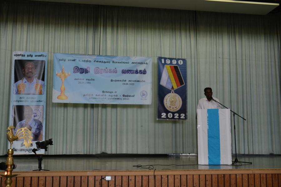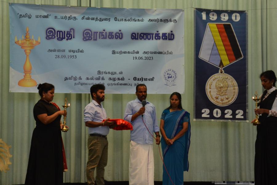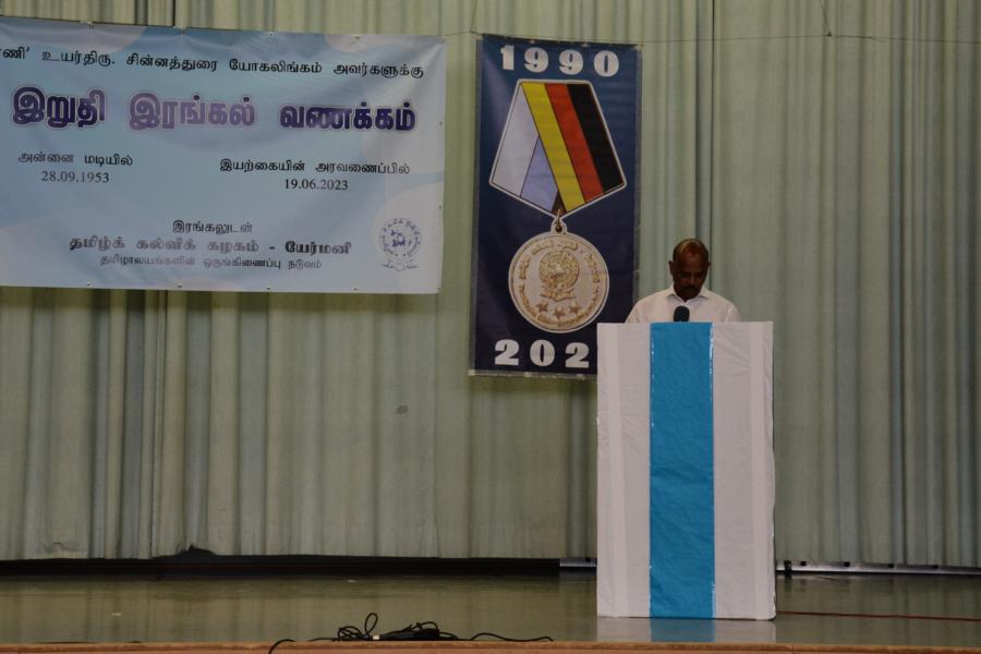 தேசியச் செயற்பாட்டளராகத் தொடங்கித் தமிழ்க் கல்விக் கழகத்தோடு இணைந்து யேர்மனிய மண்ணிலே வாழும் தமிழ்ச் சிறார்களுக்குத் தமிழ்மொழியைக் கற்பிக்கும் உயரிய இலட்சியத்தோடு கொம்பூர்க் தமிழாலய நிர்வாகியாகிப் பின் தென்மேற்கு மாநிலச் செயற்பாட்டளராகவும் பணியாற்றிய உயர்திரு சின்னத்துரை யோகலிங்கம் அவர்களுக்கான இறுதி வணக்கமும் மதிப்பளிப்பும் மீசவ் (iesau) நகரத்திலே சிறப்பாக நடைபெற்றது.