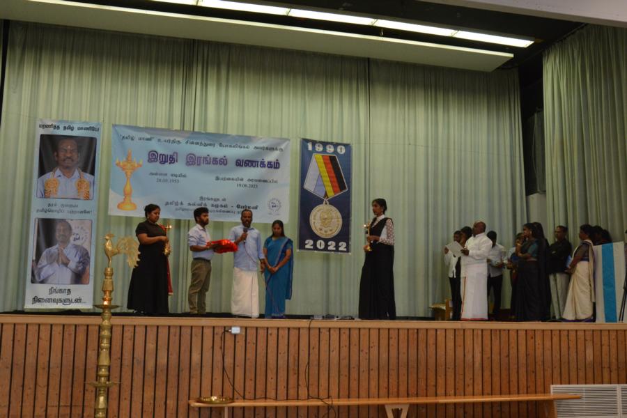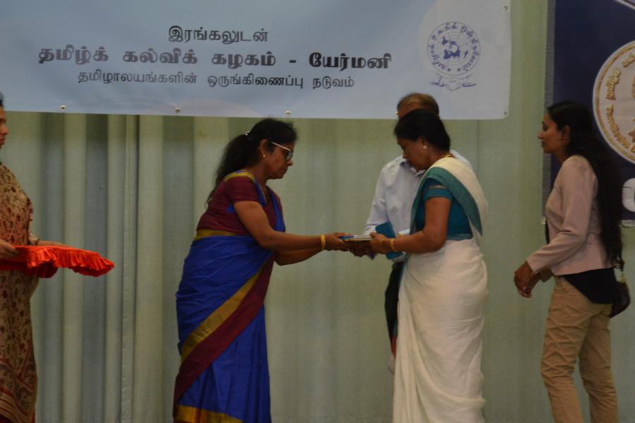 தமிழர் ஒருங்கிணைப்புக் குழுவின் பொறுப்பாளர், தாயக நலன் பேணலகச் செயற்பாட்டாளர், தமிழ்க் கல்விக் கழகப் பொறுப்பாளர், மற்றும் பிரிவுசார் பொறுப்பாளர்கள், தமிழாலயங்களின் நிர்வாகிகள் மற்றும் ஆசிரியர்களின் நினைவுரைகள் மற்றும் நினைவுக்கவிதைகளும் இடம்பெற்றன. அனைத்துலக தொடர்பகத்தால் முதல்முறையாகத் “தமிழ்ப்பற்றாளர்” என்ற பட்டம் வழங்கப்பட்டுள்ளமை குறிப்பிடத்தக்கதாகும். அப்பட்டத்தினை, யேர்மனியிலே தமிழ்மொழியையும் கலை பண்பாட்டையும், தமிழ்ச் சிறார்களுக்கு ஊட்டிவரும் அமுதசுரபியாய் மிளிரும் தமிழ்க் கல்விக் கழகத்தின் செயற்பாட்டாளரான உயர்திரு சின்னத்துரை யோகலிங்கம் அவர்கள் பெற்றுள்ளமை தனிச்சிறப்பிற்குரியதாகும்.