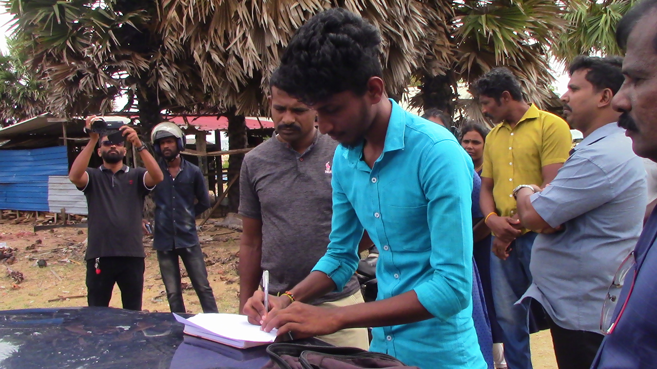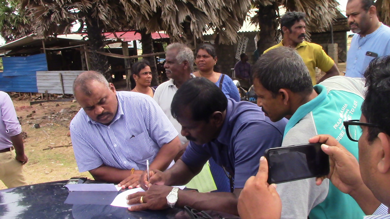 இந்நிலையில் குறித்த நில அளவை அதிகாரியால் தனக்கு எழுத்து மூலமாக கடிதம் ஒன்றினை தருமாறு கூறப்பட்ட நிலையில் காணி உரிமையாளர், வடமராட்சி கிழக்கு பொது அமைப்புகளின் பிரதிநிதிகள், பாராளுமன்ற உறுப்பினர்களான பாராளுமன்ற உறுப்பினர்களான செல்வராசா கஜேந்திரன், கஜேந்திரகுமார் பொன்னம்பலம், காணி உரிமைக்கான மக்கள் இயக்க உறுப்பினர் இரத்தினசிங்கம் முரளிதரன், வடமராட்சி கிழக்கு மக்கள் ஒன்றியத்தின் பிரதிநிதி கனைச்செல்வன், கிராம அபிவிருத்தி சங்க தலைவர் வசந்தகுமார் ஆகியோரால் ஒப்பமிட்டு கடிதம் வழங்கப்பட்ட நிலையில் குறித்த காணி அளவீடு செய்வதை நிறுத்திவிட்டு நில அளவைத் திணைக்களத்தினர் திரும்பிச் சென்றுள்ளனர்.
