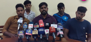 ஊடக சந்திப்பில் கருத்து தெரிவித்த யாழ்ப்பாண பல்கலைக்கழக மாணவர் ஒன்றியத்தின் தலைவர் அழகராசா விஐயகுமார்,