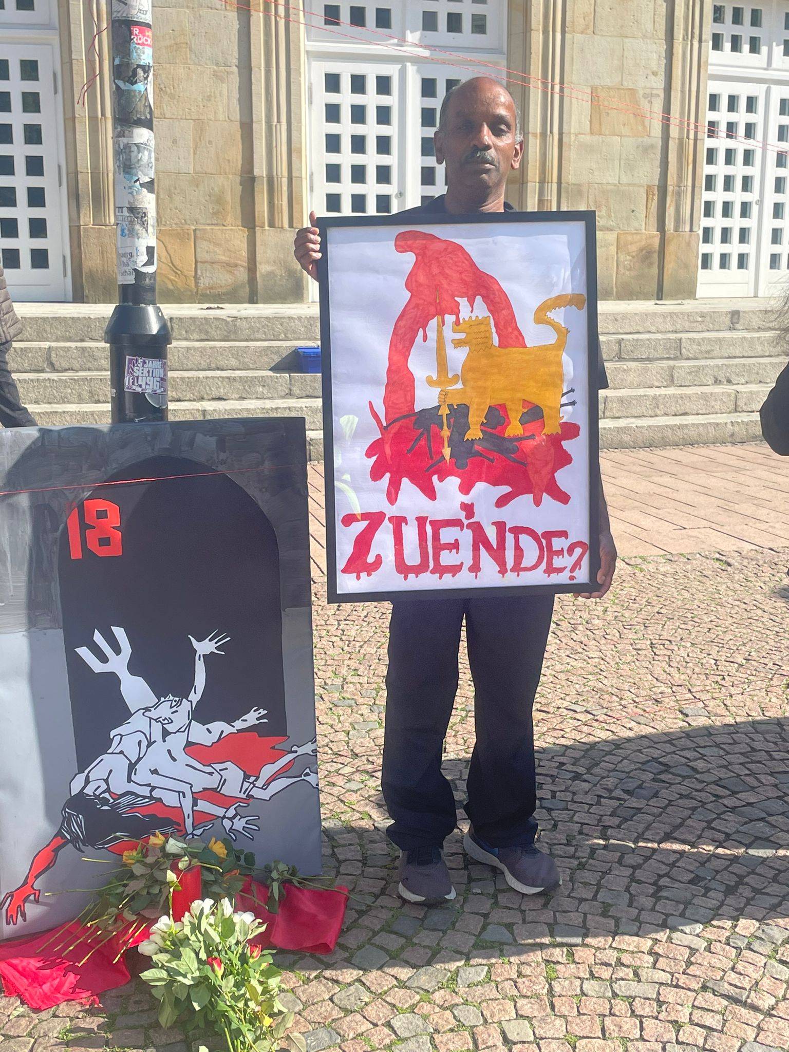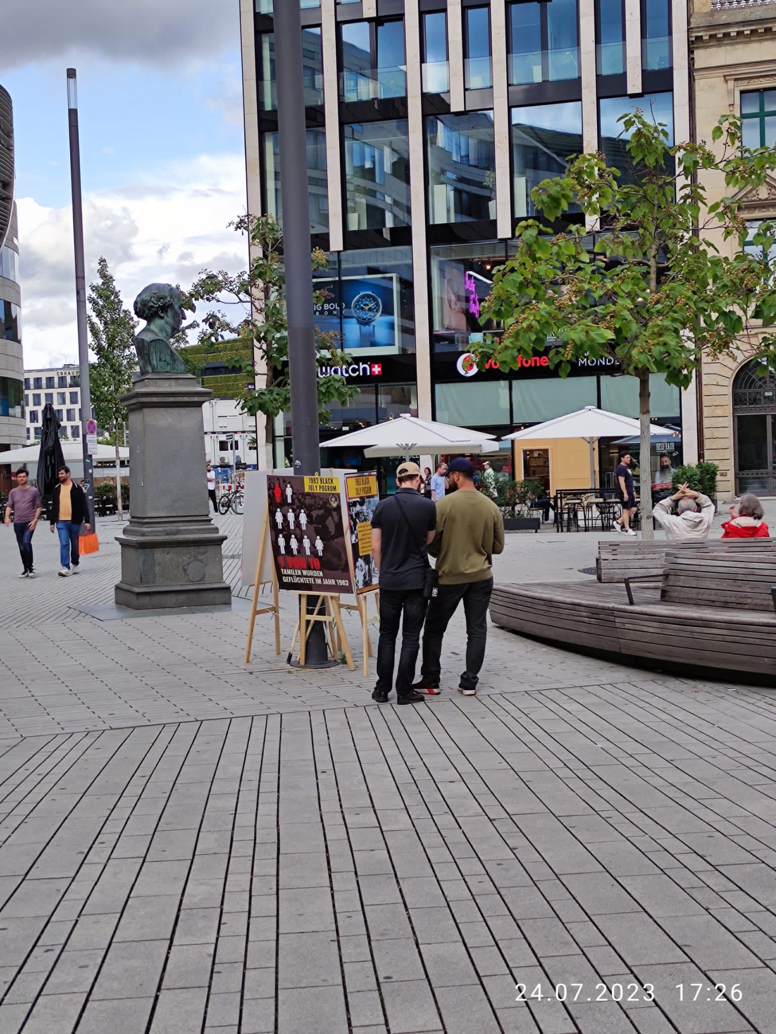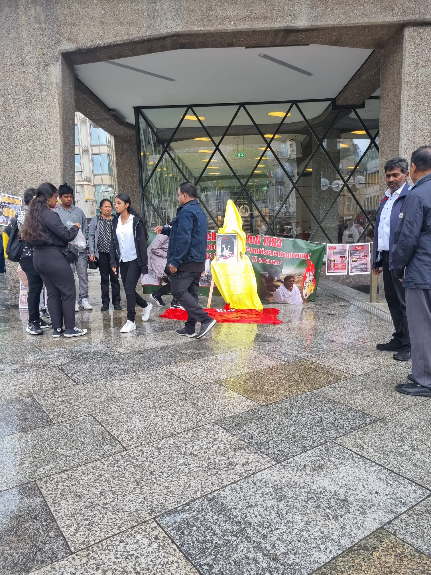 கறுப்பு யூலை 40 ஆம் ஆண்டு இன அழிப்பு வன்செயல்களின் நினைவுவாரம்,யேர்மனி முழுவதும் நினைவு கொள்ளப்பட்டு வரும் இவ்வேளையில் 24.07.2023 திங்கட்கிழமை அன்று எட்டு நகரங்களில் கவனயீர்ப்புப் போராட்டங்கள் யேர்மன் தமிழர் ஒருங்கிணைப்புக்குழுவினால் நடாத்தப்பட்டது.