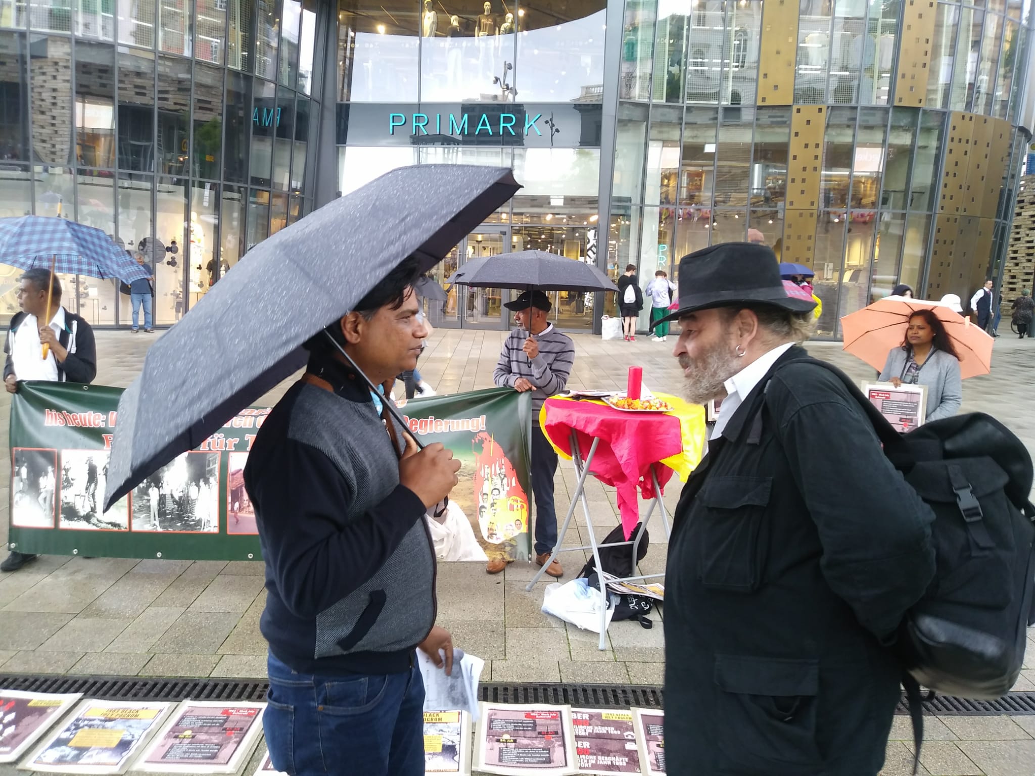 நிகழ்வுகளில் முதலில் பொது ஈகைச்சுடர் ஏற்றப்பட்டு, சுடர் மற்றும் மலர் வணக்கத்தோடு அகவணக்கம் செய்யப்பட்டது. தொடர்ந்து யேர்மனிய மற்றும் பல்வேறு தேசிய இன மக்களுக்கும் துண்டுப்பிரசுங்கள் வழங்கப்பட்டதோடு, எமது இளையவர்களினால் நேரடியாக விளக்கங்களும் கொடுக்கப்பட்டது.