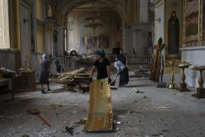 அந்த வகையில், ஒடேசா நகரத்தில் உள்ள வரலாற்று சிறப்புமிக்க பழமையான தேவாலயம் ரஷ்யா ஏவுகணைத் தாக்குதலில் நேற்றுமுன்தினம் பலத்த சேதமடைந்தது. இதில், தேவாலயத்தில் இருந்த இருவர் படுகாயமடைந்தனர். தேவாலயத்தில் இருந்த முக்கிய ஆவணங்கள் மற்றும் பொருட்களை பணியாளர்கள் பத்திரமாக மீட்டு வெளியே கொண்டு வந்தனர்.
