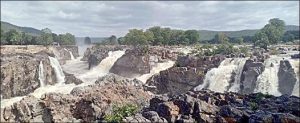 நண்பகல் 12 மணியளவில் விநாடிக்கு 18 ஆயிரம் கனஅடியைக் கடந்தது. ஆனால், மாலை 5 மணி அளவீட்டின்போது விநாடிக்கு 17 ஆயிரம் கனஅடியாக நீர்வரத்து குறைந்தது. நீர்வரத்து விநாடிக்கு 17 ஆயிரம் கனஅடியாக உள்ள நிலையில் பிரதான அருவி, சினிபால்ஸ் அருவி, ஐவர் பாணி எனப்படும் ஐந்தருவி உள்ளிட்ட இடங்களில் தண்ணீர் ஆர்ப்பரித்துக் கொட்டுகிறது. பாறைகள் படிப்படியாக மூழ்கத் தொடங்கியுள்ளன. பரிசல் இயக்கத்துக்கும் தடை விதிக்கப்பட்டு, ஒகேனக்கல் பரிசல் துறை பூட்டப்பட்டது.