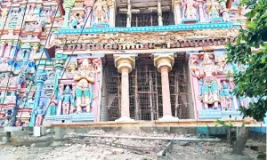 கோவிலின் கிழக்கு நுழைவு வாயிலில் உள்ள கோபுரத்தின் இரண்டு நிலைகளிலும் மேற்கூரை பூச்சுகளும் அதனை தாங்கி நிற்கும் தூண்களும் இடிந்து விழும் நிலையில் இருக்கிறது. இதனிடையே, நேற்று மாலை திருச்சி பகுதிகளில் 30 நிமிடங்கள் வரை நல்ல மழை பெய்தது.