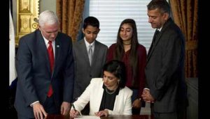 அமெரிக்க அதிபராக டொனால்ட் டிரம்ப் பதவியேற்ற பிறகு இந்தியாவை சேர்ந்த நிக்கி ஹாலே டிரம்ப் அவையில் ஐ.நா.வுக்கான அமெரிக்க தூதராக நியமிக்கப்பட்டார். அதனைத் தொடர்ந்து அமெரிக்க அரசில் முக்கிய பதவிக்கு இந்திய வம்சாவளிப் பெண் ஒருவர் நியமிக்கப்பட்டுள்ளார்.