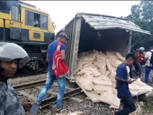 மீரிகம – வில்வத்த பிரதேசத்தில் கொள்கலன் பாரவூர்தியொன்று, ரயிலுடன் மோதி விபத்துக்குள்ளாகியுள்ளது.