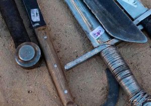 இவற்றில் வாள்களுடன் வெடிகுண்டுகள், துப்பாக்கிகள் மற்றும் ஆயுதங்களும் அடங்குகின்றன.