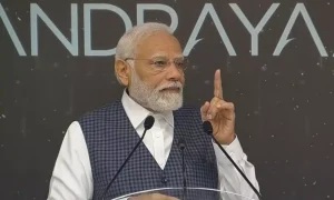 பின்னர் சந்திரயான் 3 விண்கலம் நிலவில் கால் பதித்தது குறித்து, இஸ்ரோ தலைவர் சோம்நாத் விளக்கமாக பிரதமர் மோடிக்கு எடுத்துக் கூறினார். அதன்பின் பிரதமர் மோடி விஞ்ஞானிகளுக்கு மத்தியில் பேசினார். அப்போது அவர் கூறியதாவது:-