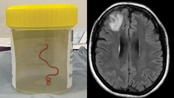 பெண்ணொருவர் வழமைக்கு மாறான வயிற்றுவலி இருமல் இரவுவியர்வை ஆகியவற்றால் பாதிக்கப்பட்டார்,அவருக்கு மனச்சோர்வு மறதிபோன்றவைகளும் காணப்பட்டன என தெரிவித்துள்ள வைத்தியர்கள் அந்த புழு இரண்டு மாதங்களாக அவரின் மூளைக்குள் இருந்திருக்கலாம் எனவும் தெரிவித்துள்ளனர்.