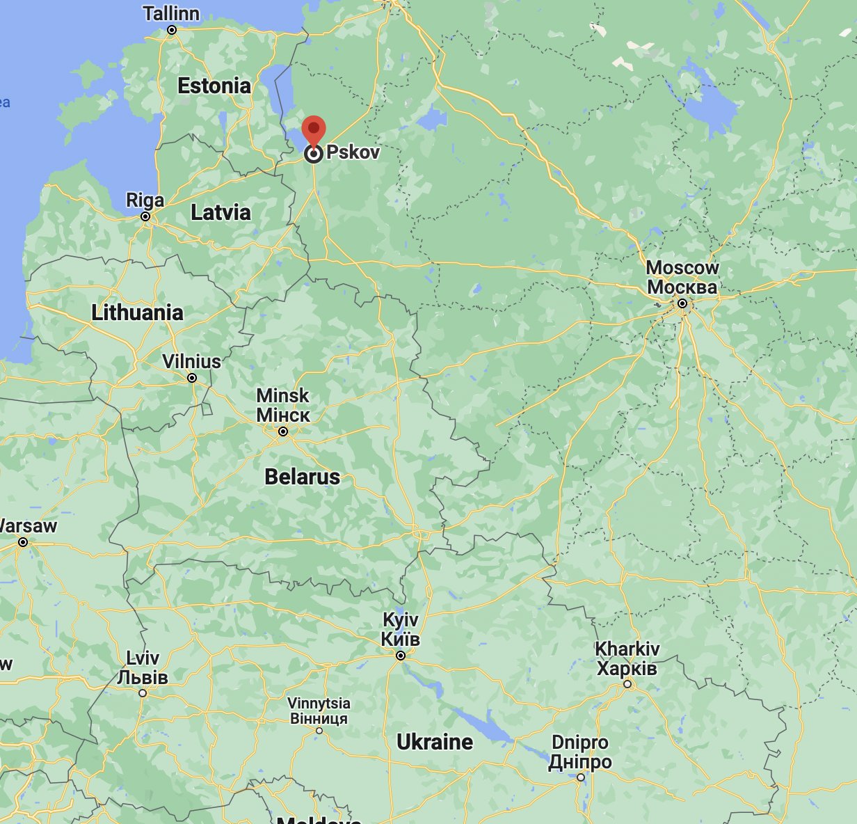 பஸ்கோவ் நகரம் உக்ரைனிலிருந்து 600 கிலோமீற்றர் தொலைவில் எஸ்டோனியாவின் எல்லைக்கு அருகில் உள்ளமை குறிப்பிடத்தக்கது.