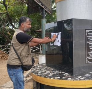 குறிப்பாக பேரணி வரும் பகுதியிலும் மட்டக்களப்பு காந்தி பூங்காவில் உள்ள படுகொலை செய்யப்பட்ட ஊடகவியலளார்கள் நினைவுத் தூபியில் இந்த சுவரொட்டிகள் தமிழ் எழுத்துப் பிழைகளுடன் ஒட்டப்பட்டுள்ளன.