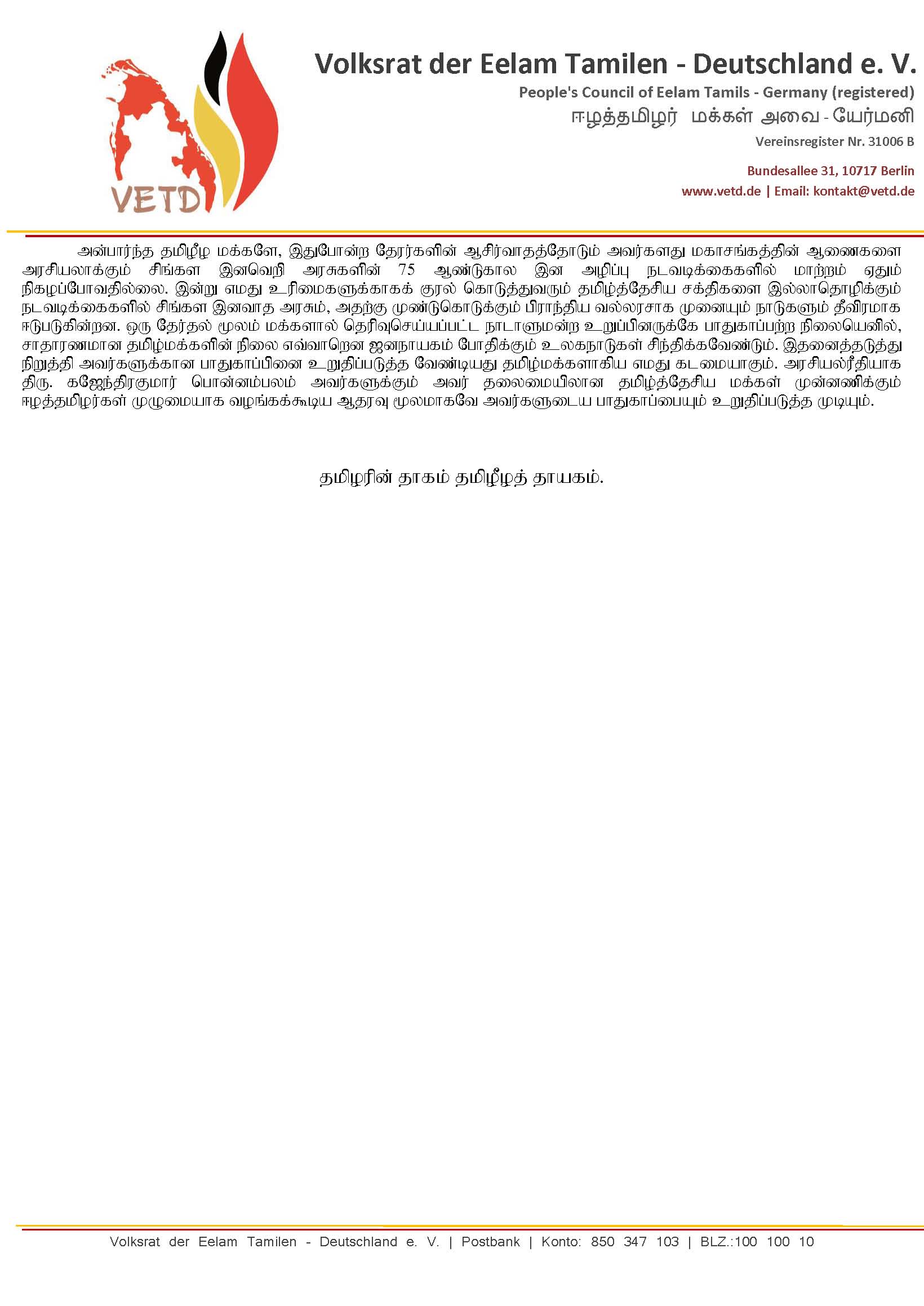 அன்பார்ந்த தமிழீழ மக்களே,