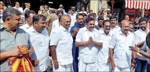 மதுரையில் ஆக.20-ம் தேதி அதிமுக மாநில மாநாடு மதுரையில் நடந்தது. மாநாடு வெற்றிகரமாக நடத்தி முடித்ததற்காக மீனாட்சியம்மன் கோயிலில் தரிசனம் செய்ய அதிமுக பொதுச் செயலாளர் பழனிசாமி நேற்று மதுரை வந்தார்.முன்னாள் அமைச்சர்கள் செல்லூர் கே.ராஜூ, ஆர்பி.உதயகுமார், அமைப்புச் செயலாளர் விவி.ராஜன் செல்லப்பா, தகவல் தொழில்நுட்ப அணி மண்டலச் செயலாளர் ராஜ்சத்யன், முன்னாள் எம்எல்ஏ டாக்டர் சரவணன், மாவட்ட இளைஞர் அணி செயலாளர் வழக்கறிஞர் ரமேஷ் ஆகியோருடன் மீனாட்சியம்மன் கோயிலில் தரிசனம் செய்தார்.