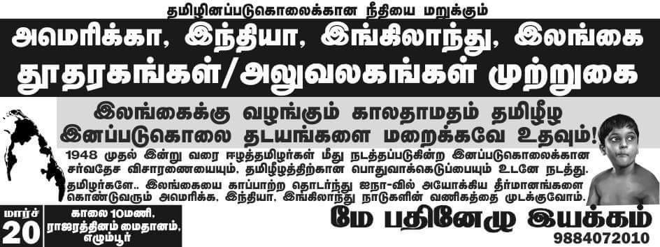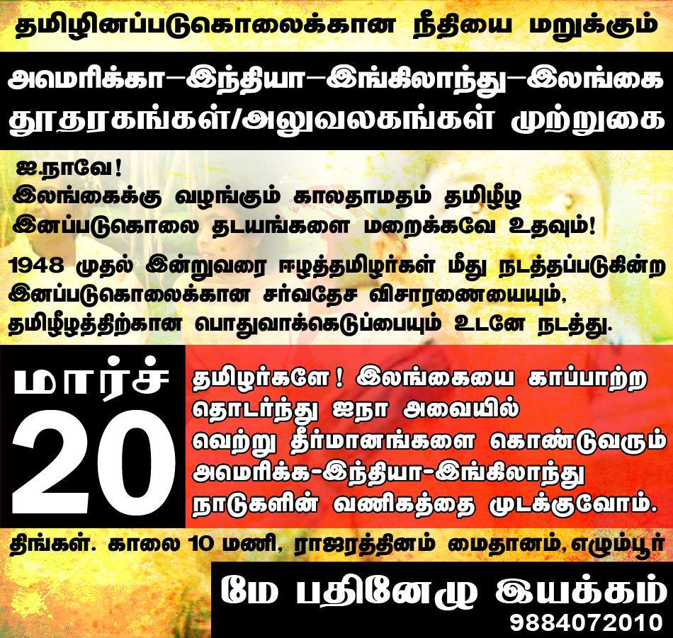 தமிழர்களே! இலங்கையை காப்பாற்ற தொடர்ந்து ஐநா அவையில் வெற்று தீர்மானங்களை கொண்டுவரும் அமெரிக்க – இந்தியா – இங்கிலாந்து நாடுகளின் வணிகத்தை முடக்குவோம்.வாருங்கள்